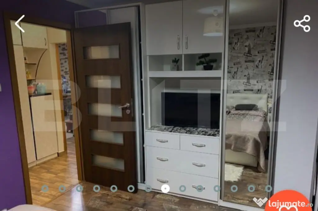 Blitz Satu Mare va propune spre achizitionare un apartament in zona Micro 16, finisat, complet mobilat, compartimentat astfel: 2 dormitoare( cel mare cu dressing), living, bucatarie, hol, 2 balcoane inchise, baie prevazuta cu geam pentru ventilatie naturala. Un apartament spatios si luminos, pozitionat intr-o zona cu acces facil catre toate ariile de interes( scoli, zona verde, parc fitness, farmacii, supermarket, mijloace de transport in comun). Apartamentul are o suprafata de 80 mp utili si este complet renovat. Instalatiile electrice si sanitare au fost schimbate. Sunt doar doua apartamente pe palier, ceea ce constituie un avantaj major in ceea ce priveste intimitatea si linistea locatarilor, oferind totodata un confort sporit si un mediu mai exclusivist. Blocul este prevazut cu acoperis, usa de la intrare este metalica, casa scarii este ingrijita, iar accesul in scara este conditionat de interfon. Apartamentul are alocat un beci(uscat, spatios, prevazut cu geam) la subsol si are loc de parcare. Acest apartament bine intretinut reprezinta o alegere ideala pentru o locuinta practica si confortabila. Contactati-ne pentru detalii suplimentare si vizionare!