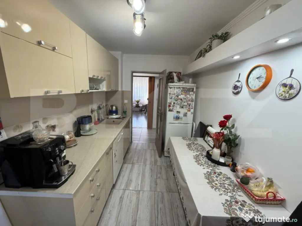 Blitz Satu Mare va propune spre achizitionare un apartament superb in zona Tei, ultrafinisat, compartimentat asfel: 4 camere(din care 2 dormitoare), hol, bucatarie prevazuta cu camara, dressing, 2 bai , 2 balcoane si un beci mare uscst, prevazut cu geam(ventilatie naturala). Un apartament spatios si luminos, pozitionat intr-o zona cu acces facil catre toate ariile de interes. Apartamentul are o suprafata de 87 mp utili si este complet renovat si finisat cu materiale noi de calitate superioara. Instalatiile termice, electrice si sanitare sunt noi, dotate cu echipamente moderne( centrala termica, calorifere, usi interioare, instalatie de aer conditionat, parchet laminat, gresie, faianta, toate sunt noi). Toate acestea genereaza costuri de intretinere reduse, care confera o solutie de locuire economica. Blocul este prevazut cu acoperis din tigla, usa de la intrare este metalica, casa scarii este ingrijita, iar accesul in scara este conditionat de interfon. Acest apartament reprezinta o alegere ideala pentru o locuinta practica si confortabila. Contactati-ne pentru detalii suplimentare si vizionare!