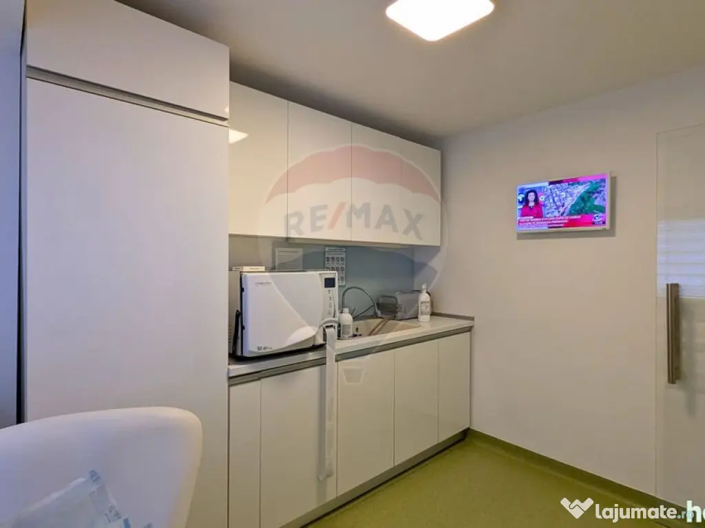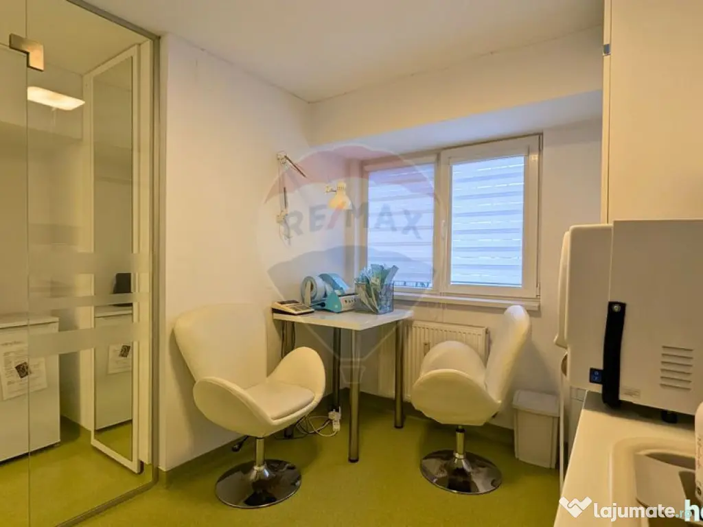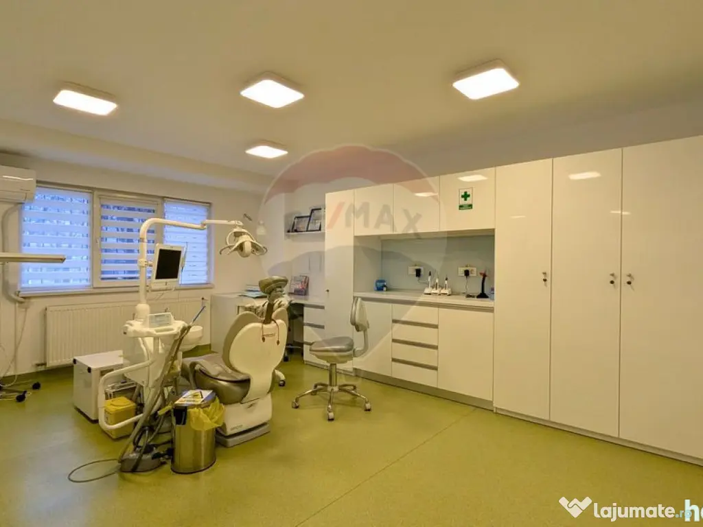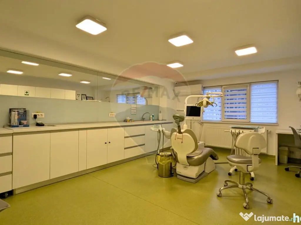 Vânzare Afacere Cabinet Stomatologic de vânzare, complet echipat și autorizat, apartament 3 camere inclus Piața Alba Iulia, București Se oferă spre vânzare cabinet stomatologic autorizat, complet echipat și funcțional, situat în București, zona Piața Alba Iulia – Bulevardul Burebista nr. 1, la parter, într-un spațiu medical dedicat, ideal pentru extinderea unui cabinet stomatologic existent sau pentru deschiderea unei noi locații. Cabinetul are o suprafață utilă de 65 mp, este compartimentat în 3 camere medicale, 2 grupuri sanitare și spații tehnice, respectând circuitele medicale avizate. Se predă la cheie, cu toate autorizațiile la zi, permițând funcționarea imediată.Izolat termic si fonic pe pereții interiori Dotări complete – cabinet stomatologic echipat: 2 unituri stomatologice Miglionico (Italia), dintre care unul pentru chirurgie dentară Fiziodispenser Implantmed W&H – implantologie Autoclav Miglionico 24 litri Compresor stomatologic Miglionico pentru două unituri, insonorizat, în cameră separată 2 pompe de aspirație chirurgicală (una mobilă) Micromotor endodontic și aparatură pentru sigilare canale Aparat de profilaxie și lampă foto Truse de implantologie Dentium și Bredent Accesorii complete pentru protetica dentară Avantaje SEO & funcționale: cabinet stomatologic autorizat București spațiu medical de vânzare – parter reclama luminoasa cu autorizație locație centrală – Piața Alba Iulia cabinet stomatologic complet utilat Instrumentar pentru toate specialitățile investiție fără costuri suplimentare ideal pentru extindere sau preluare imediată Această proprietate reprezintă o oportunitate excelentă pentru cabinete stomatologice, clinici sau investitori medicali care caută un spațiu medical autorizat, complet echipat, într-o zonă centrală a Bucureștiului. Suprafaţă totală: 65 m² An finalizare construcție: 1993 Vitrină: 6.0 m Stadiu construcţie: Finalizat Număr încăperi: 3 Posibilitate parcare: Nu Tip imobil: Bloc de apartamente