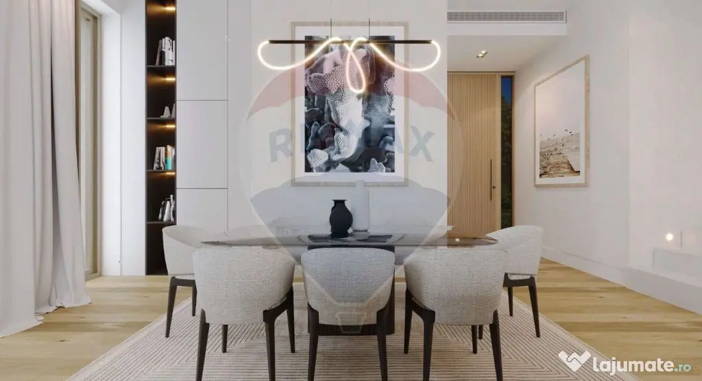 Situată în prestigiosul ansamblu Bellemonde Residence din Pipera, această vilă cu 4 camere îți oferă tot ce înseamnă un stil de viață modern, relaxat și rafinat. Cu un regim de înălțime P+1, proprietatea beneficiază de vedere directă către piscina exterioară a ansamblului și face parte dintr-o comunitate în curs de formare – una închisă, sigură și exclusivistă, ideală pentru familii sau profesioniști care apreciază intimitatea, eleganța și confortul.