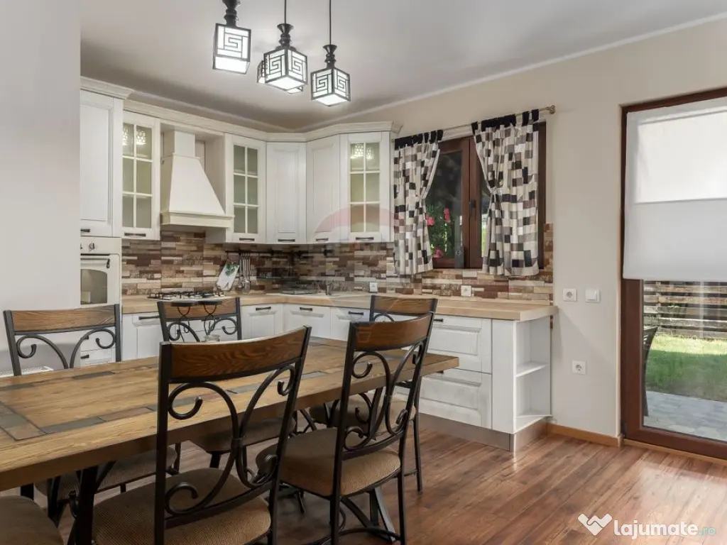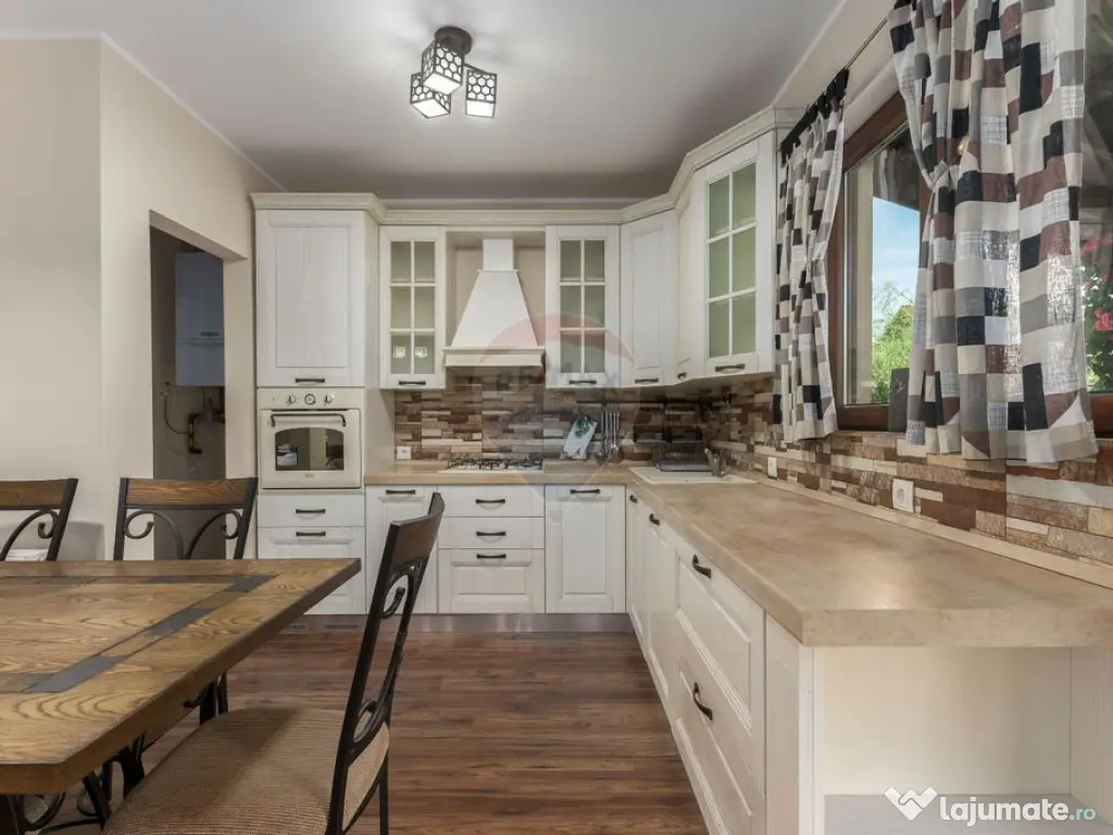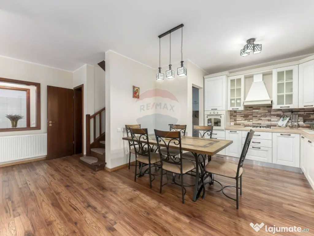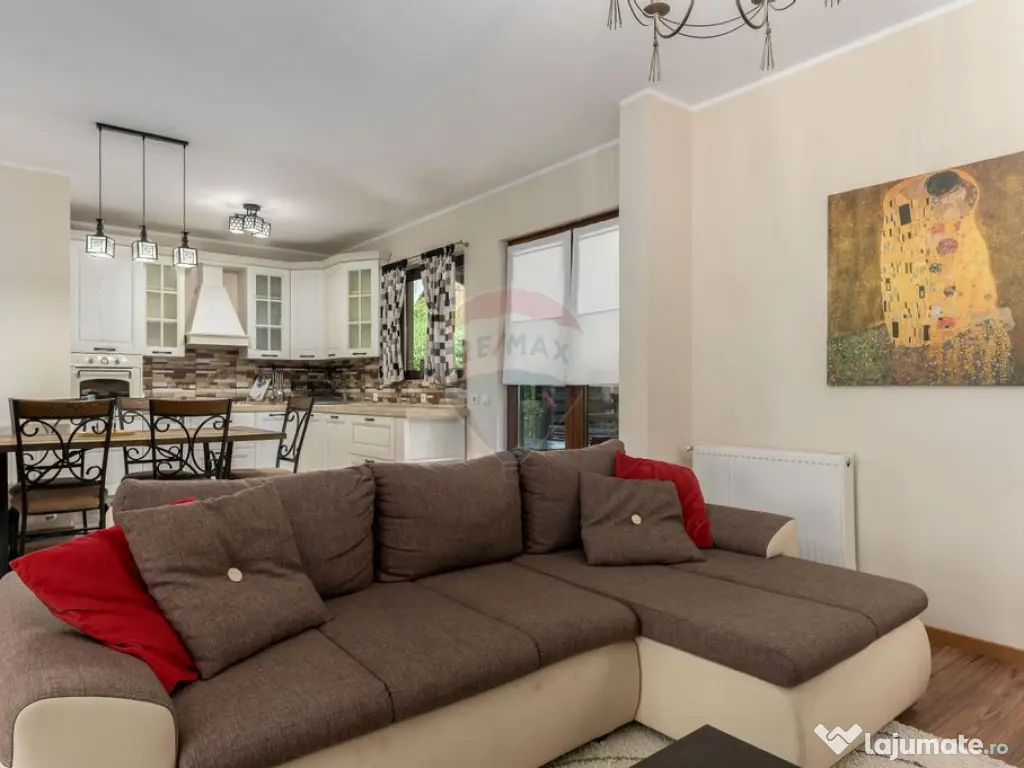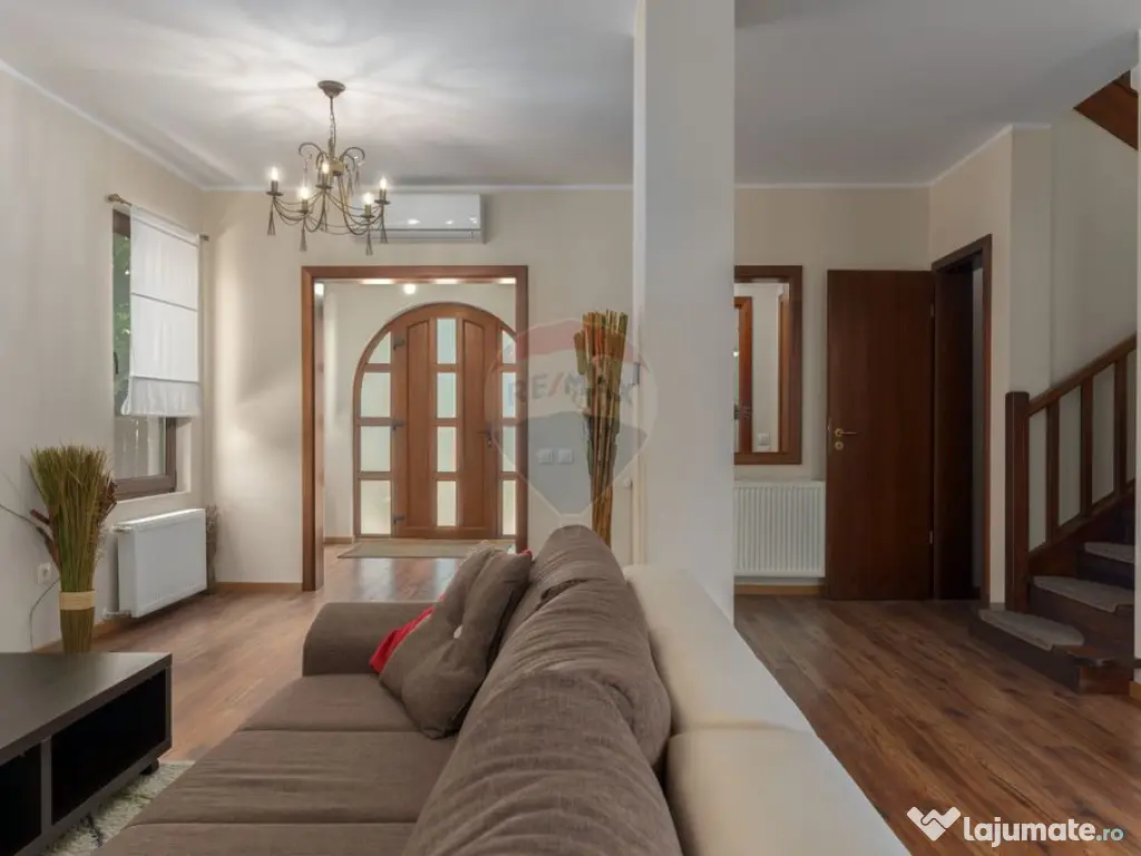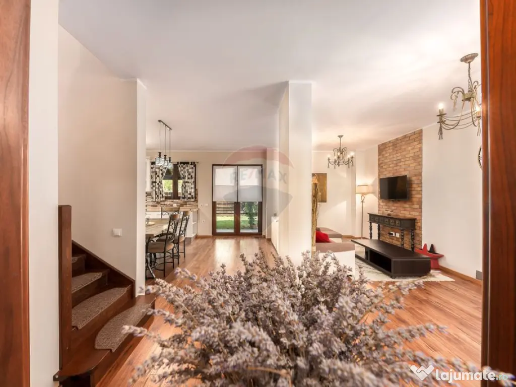 Oază de liniște și rafinament – Vilă individuală în Paradisul Verde, Corbeanca Într-un colț de natură unde timpul curge altfel și apusurile par pictate, această vilă individuală din ansamblul rezidențial Paradisul Verde te așteaptă să o numești „acasă”. Construită în 2015, casa se remarcă prin echilibru, căldură și rafinament. Are 4 camere spațioase, dispuse armonios pe parter și etaj, fiind ideală pentru o familie care caută confort, intimitate și frumusețe. Interiorul este complet mobilat și utilat cu grijă, păstrându-se într-o stare impecabilă – o locuință primitoare, în care simți că totul este „așezat”. Terasa este perfectă pentru seri liniștite sau momente cu cei dragi, iar curtea superbă, atent îngrijită, adaugă acel sentiment de acasă pe care puține locuri îl oferă. Paradisul Verde nu este doar un cartier – este o comunitate aparte, o destinație pentru cei care își doresc mai mult decât o simplă locuință. Străzile sunt liniștite, împânzite de verdeață, iar apusurile care se văd printre copaci sunt pur și simplu magice. Ai parte de pază, sport & spa, restaurante cochete, alei de promenadă și multă liniște, într-un cadru natural perfect, la doar câteva minute de agitația orașului. Este mai mult decât o casă. Este un colț de liniște, un stil de viață. Hai să-l descoperi! Număr niveluri imobil: 1 Număr Băi: 3 Posibilitate parcare: Da Nr. locuri parcare: 2 Curent Apă Canalizare Gaz Sistem irigaţie Încălzire Climă