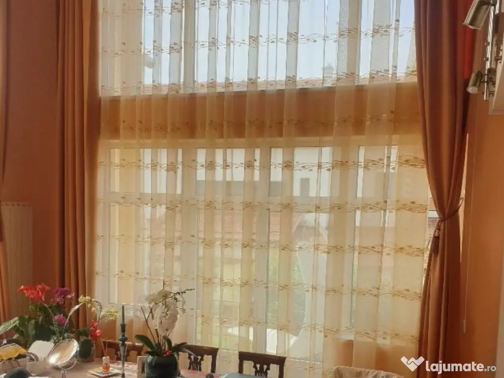 Vand vila dosebita , zona str Colinelor , constructie 2001 , D+P+E , sc 480 mp , amprenta la sol 180 mp ,teren 1200 mp , piscina, intrare auto , copertina pentru 2 masini , garaj , terase exterioare , balcon-logie pe etaj . Vila se compune la parter din living , bucatarie , baie , birou , dormitor matrimonial cu baie , dressing , la etaj 2 dormitoare cu baie , dressing , logie spre strada si pod amenajat . La demisol garaj , sala sport , depozit , sauna , atelier , camara etc , Vila este complet mobilata , dotata , curte amenajata , piscina , living cu inaltime pe 2 nivele , locatie exclenta , strada asfaltata ,panorama , incalzire pe gaz dar initial a fost pe motorina , ( s-a pastrat bazinul de 5000 l ) ,Constructia este din caramida porotherm , izolata intre 2 straturi de caramida cu polistiren de 5 , ziduri interioare de 30 , acoperis cu tigla tondach , Pret 490.000 Euro neg