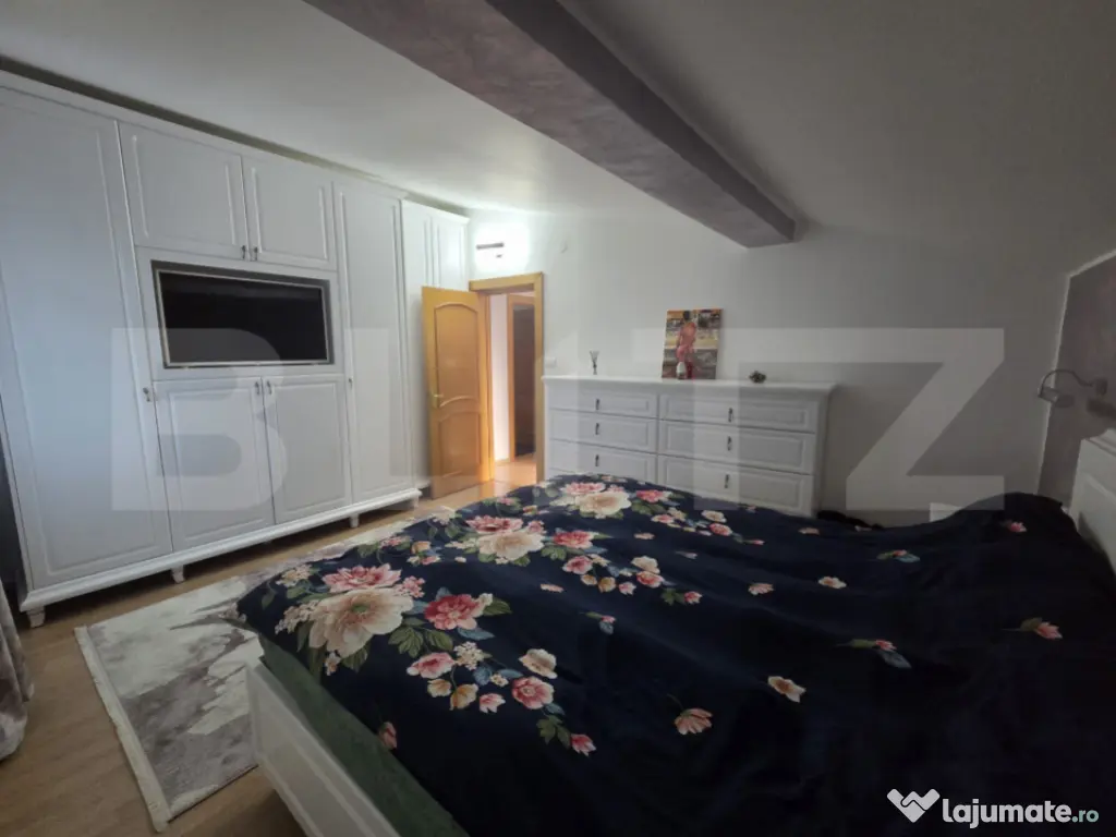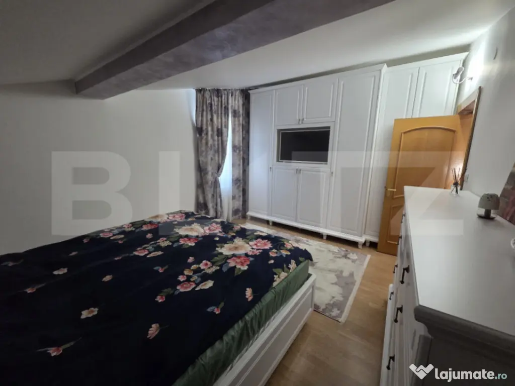 Blitz vă propune spre vânzare o vilă modernă construită integral din cărămidă, situată într-o zonă liniștită și accesibilă din Târgoviște, cu o arhitectură elegantă și finisaje de înaltă calitate. Proprietatea impresionează prin funcționalitate, confort și atenția acordată fiecărui detaliu. Suprafața totală a terenului este de 389 mp, din care curtea utilă măsoară 277 mp, amenajată cu pietre decorative, gazon și foișor cu bucătărie de vară complet echipată. Vilă dispune de o suprafață utilă totală de 226 mp (parter + etaj), compartimentată armonios: Parter (113 mp utili): -living spațios open-space cu zonă de dining; -bucătărie complet mobilată și utilată; -dormitor generos; -baie de serviciu; -acces către curte și foișor. Etaj (113 mp utili): -4 dormitoare luminoase; -2 băi moderne; -2 holuri spațioase. Anexe și dotări: -garaj subteran de 28 mp cu ușă automată; -toaletă de curte; -porți și ușă de garaj acționate electric, pe telecomandă; -sistem de supraveghere video; -centrală proprie, 3 aparate de aer condiționat; -ferestre termopan Salamander Evolution cu sticlă de 52 mm, uși din termopan; -izolație exterioară de 10 cm și pod izolat cu vată minerală; -acoperiș din tablă, tencuială interioară și exterioară decorativă; -pardoseli cu parchet, gresie și faianță; -scară interioară din lemn masiv. Utilități: gaze, apă curentă, canalizare, internet, electricitate. Vila se vinde complet mobilată și utilată, inclusiv cu electrocasnice: aragaz, frigider, combină frigorifică, congelator, mașină de spălat, uscător de rufe etc. Această proprietate reprezintă o oportunitate unică pentru cei care caută un cămin elegant, complet echipat, într-o zonă sigură, modernă și cu acces facil. Cod ofertă / ID BLITZ: P155955 Id intern: P155955 Număr niveluri imobil: 1 Număr Băi: 3 Curent Apă Canalizare Gaz Climă