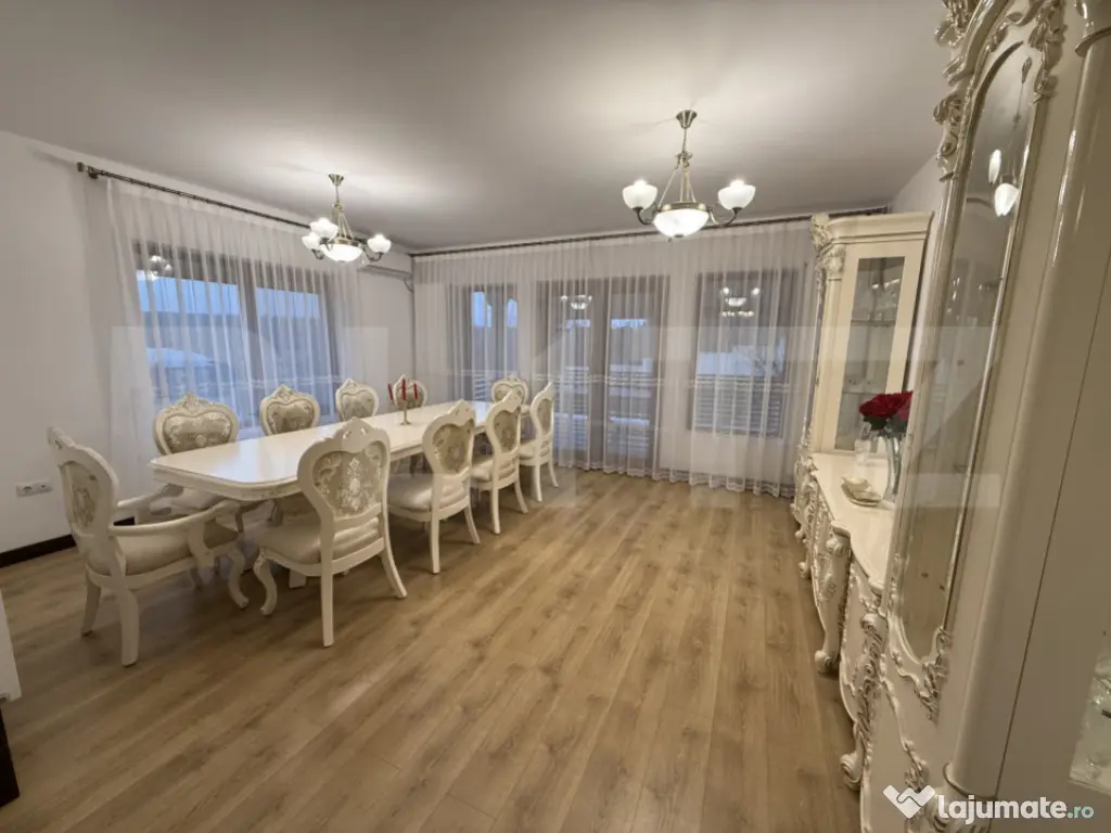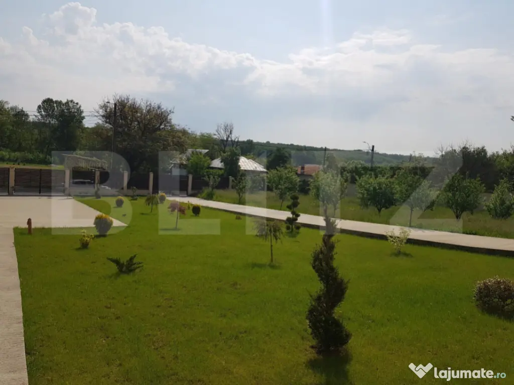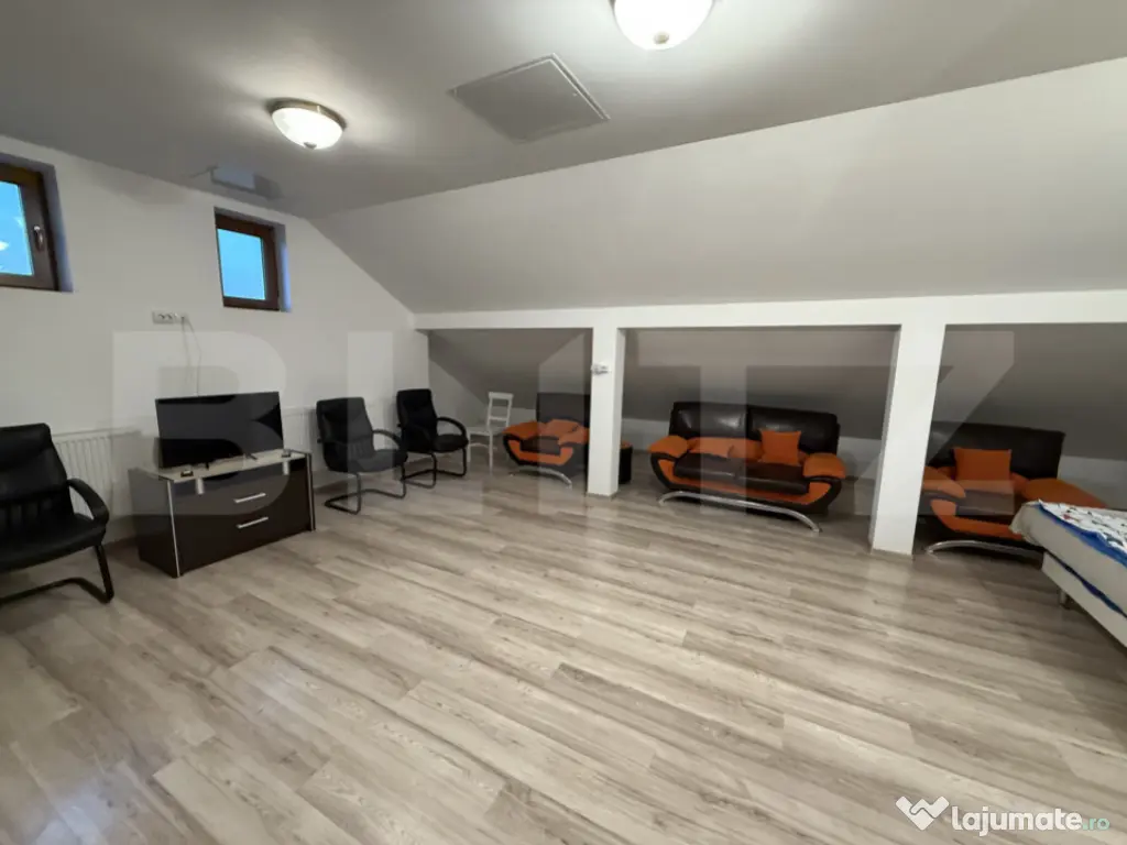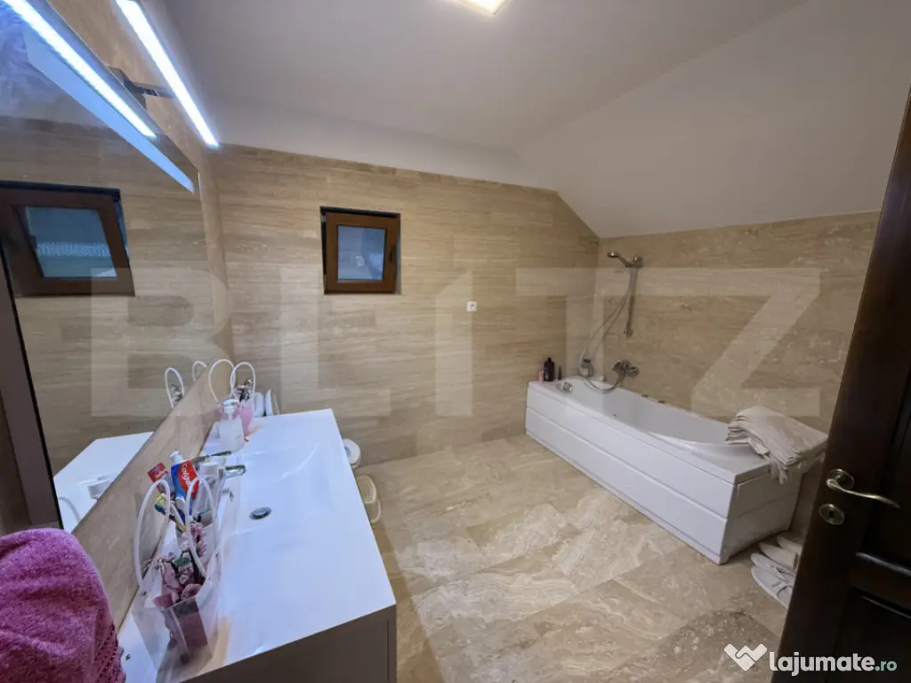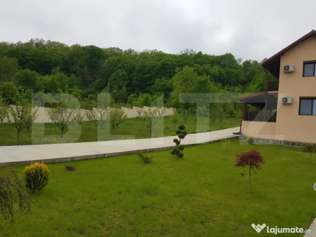Blitz oferă spre vânzare o vilă impresionantă, situată într-o zonă deosebit de liniștită din Cobia (aproape de Găești), la doar 20 km de Autostrada A1. Proprietatea este ideală atât pentru locuință de familie, cât și pentru investiție turistică, datorită suprafețelor generoase, compartimentării excelente și terenului foarte mare de 3173 mp. Casa este construită solid, cu atenție la detalii și finisaje premium: -mobilier din lemn masiv realizat pe comandă, -trepte și balustrade din fag, -uși din tei, -băi și holuri placate cu piatră naturală (travertin), -terase placate cu granit, -bucătărie complet utilată, cu fronturi decorative și blat de piatră, -2 aparate de aer condiționat, -sistem antiefracție cu senzori și videointerfon. Proprietatea este formată din parter + etaj + mansardă, având o suprafață utilă de 327 mp și 370 mp construiți. Mansarda de 77 mp reprezintă un spațiu excelent pentru relaxare, activități, hobby sau camere suplimentare. Terenul de 3173 mp este complet împrejmuit și include: -două porți de acces (una automată), -alei betonate pe 40 m, -gazon 400 mp cu sistem de irigare automat, -livadă matură cu aproximativ 60 de pomi fructiferi, -clădire secundară de 36 mp (garaj, baie și depozitare), -panouri fotovoltaice de 9 kW care reduc semnificativ costurile de întreținere. Proprietatea se vinde complet mobilată și utilată, exact ca în fotografii – totul este pregătit pentru mutare imediată Este o ofertă exclusivă, rar întâlnită în zonă, perfectă pentru cei care caută liniște, spațiu, calitate și un potențial real de investiție. Cod ofertă / ID BLITZ: P159463 Id intern: P159463 Număr niveluri imobil: 2 Număr Băi: 2 Curent Apă Gaz Climă