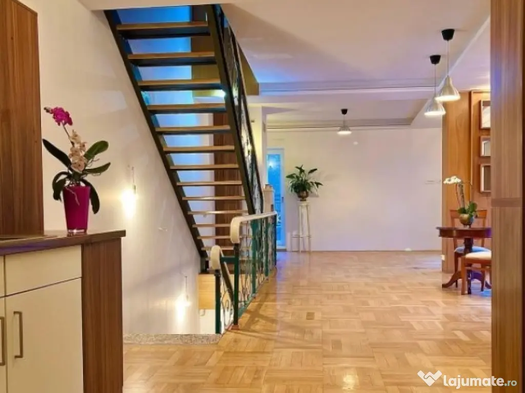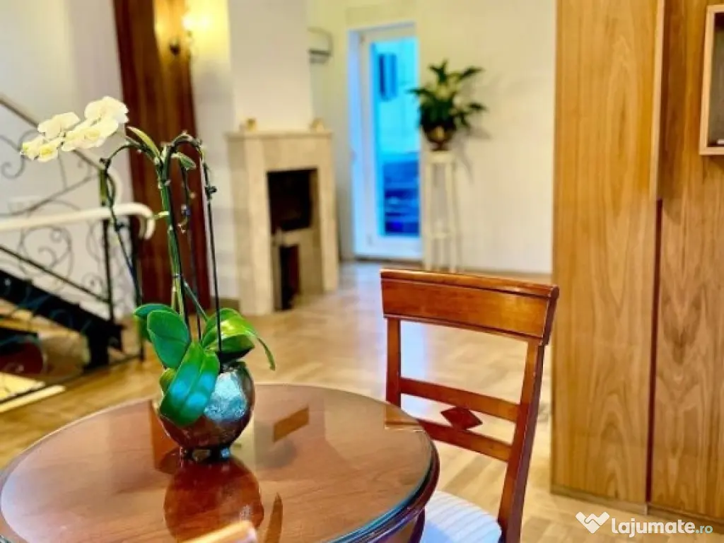 Amplasata central, cu numeroase mijloace de transport in comun la indemana si acces facil catre orice punct al orasului, zona superba, linistita de case. Imobil cu finisajele premium si multiplele facilitati precum zona de terasa cu gratar deasupra ultimului nivel, semineu pe lemne in living, doua locuri de parcare in curte diferentiaza aceasta proprietate de altele.