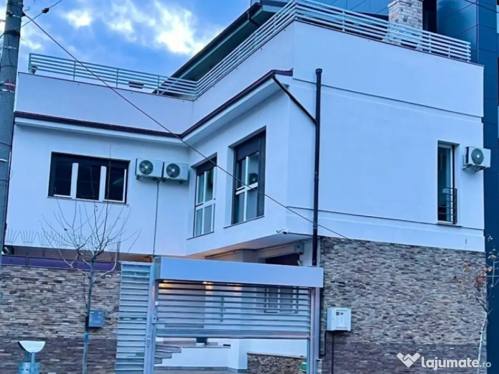 Cu o suprafata utila generoasa, de aproximativ 230 mp, incluzand si terasele, casa dispune de un subsol generos cu spatiu tehnic, finisajele interioare premium (granit, parchet stejar masiv, usi filomuro, tamplarie din lemn masiv stratificat, ventiloconvectori de pardoseala, rulouri exterioare electrice din aluminiu la ferestre, dulapuri- dressing) avand si o zona special amenajata pentru activitati de entertainment si relaxare la nivelul terasei de la ultimul nivel.