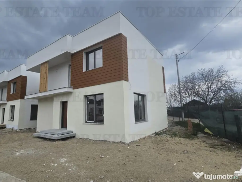 Excelenta prin experienta! Va propunem la vanzare 2 vile individuale intr-un mini-complex rezidential in constructie din Chiajna, zona linistita ferita de zgomot si poluare. STB catre Bucuresti la distanta de mers pe jos. Constructie solida pe cadre de beton si caramida porotherm. 2 placi de beton. Izolata cu polistiren de 15cm la exterior. Incalzire in pardoseala. Geamuri Veka Spectral tripan 5 camere. Toate utilitatile, acces pe drum public asfaltat. Compartimentare: Hol, living cu iesire pe terasa, bucatarie inchisa, podest, grup sanitar, birou; hol, 3 dormitoare, 2 bai si 2 balcoane la etaj. Teren 250metri, suprafata utila 136.44metri, suprafata totala 157.77metri. Utilitati: apa, gaze, curent, canalizare, internet, centrala proprie pe gaz Posibilitate de a iti alege finisajele: buget gresie/parchet 80 lei/mp, baie: 2.500 lei, 800 lei/usa interioara. Vilele se vand pentru pretul de 230000 EURO. Oferim consultanta gratuita pentru obtinerea de credit ipotecar. Termen de mutare vara 2026 Oferta apartine agentiei Top Estate Team (www.tet.ro) Număr Băi: 3 Posibilitate parcare: Da Nr. locuri parcare: 2 Curent Apă Canalizare Gaz