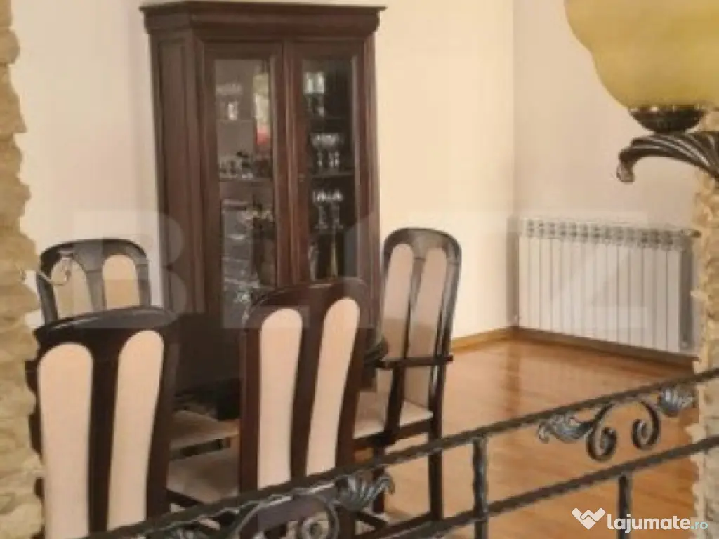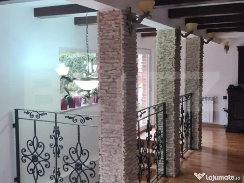 Blitz propune spre vanzare o vila in mijlocul naturii, cu un peisaj de care te vei îndragosti cu siguranța, ce poate fi folosită ca locuință personală de vacanță sau ca o mică pensiune/afacere de familie. Suprafața terenului este de 1253 mp si casa cu o suprafata utila de 240 mp. Aceasta este construită din caramid Poroterm, izolată pe exterior cu polistiren de 10 cm, tencuială decorativă și un acoperiș din tablă tip Lindab. - La parter găsim : 2 bucătarii, living, camera de zi, 1 baie, hol si 2 spații de depozitare (debarale) -La etaj sunt : 4 dormitoare, 2 bai, hol, terasă + acces pod. -La exterior sunt dispuse: bucătarie de vară utilată, magazie, garaj cu ușă automată cu telecomandă, camera tehnică cu centrală pe lemne, foisor, fantană, fosă septică cu decantare, porti acces din fier forjat, livada de pomi fructiferi si spatii cu flori. Ca utilități sunt : două surse de caldură ( centrală pe lemne cu calorifere in fiecare camera și a doua centrală pe gaz), 220 V, apa din sursa proprie cu hidrofor, parchet, gresie, faianta, ușă metalica la intrare, usi de lemn interioare, scari interioare din lemn, supraveghere video cu senzori de mișcare, usa garaj automata, mobilă din MDF și lemn masiv. Imobilul se vinde COMPLET mobilat si utilat precum se vede in imagini. Cod ofertă / ID BLITZ: P11972 Id intern: P11972 Număr niveluri imobil: 1 Număr Băi: 3 Nr. locuri parcare: 4