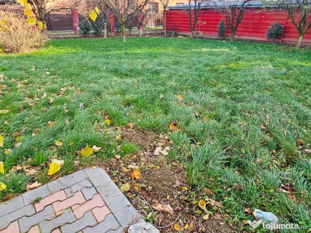 Terenul este împrejmuit cu gard cu porți automatizate, iar curtea este frumos amenajată cu pavele, barbeque, gazon, flori, pomi fructiferi și vită de vie.