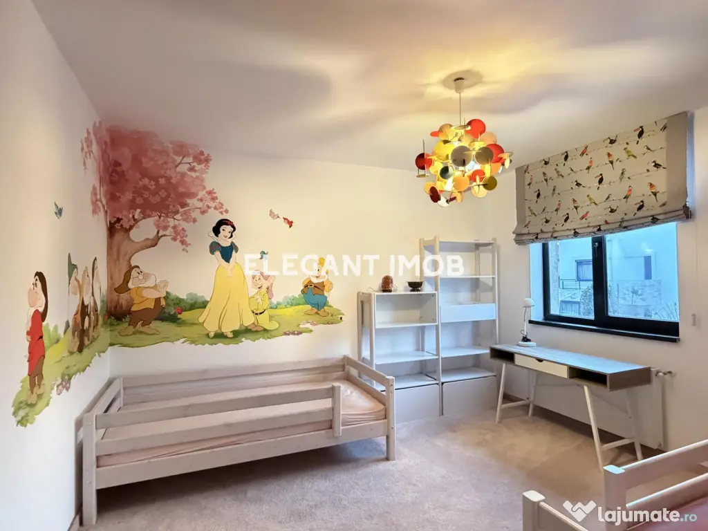 O vila individuala, cu suprafete generoase, frumos mobilata si utilata, isi asteapta chiriasi. Vila este amplasata in cartierul Corbeanca Forest, foarte aproape de magazine, scoala, gradinita, DN1 Value Center. Este dispusa pe parter, etaj si mansarda astfel: - parter: hol intrare, living generos, birou, bucatarie, wc serviciu, garaj, terasa acoperita - etaj: dormitor matrimonial cu baie, dressing si balcon, doua dormitoare cu baie comuna - mansarda: doua dormitoare cu baie comuna Casa este la prima inchiriere, este mobilata cu gust, iar bucataria este noua, utilata cu tot ce este necesar: plita, frigider, hota, masina de spalat vase Vila este construita pe un teren de 500 mp si este racordata la toate utilitatile - gaze, curent, apa, canalizare. Apa provine din forajele proprii si este furnizata de administratia complexului la pret zero. Curtea este frumos amenajata cu gazon, vegetatie ajunsa la maturitate si are instalatie automata de udat Număr niveluri imobil: 3 Număr Băi: mai mult de 3 Posibilitate parcare: Da Nr. locuri parcare: 3