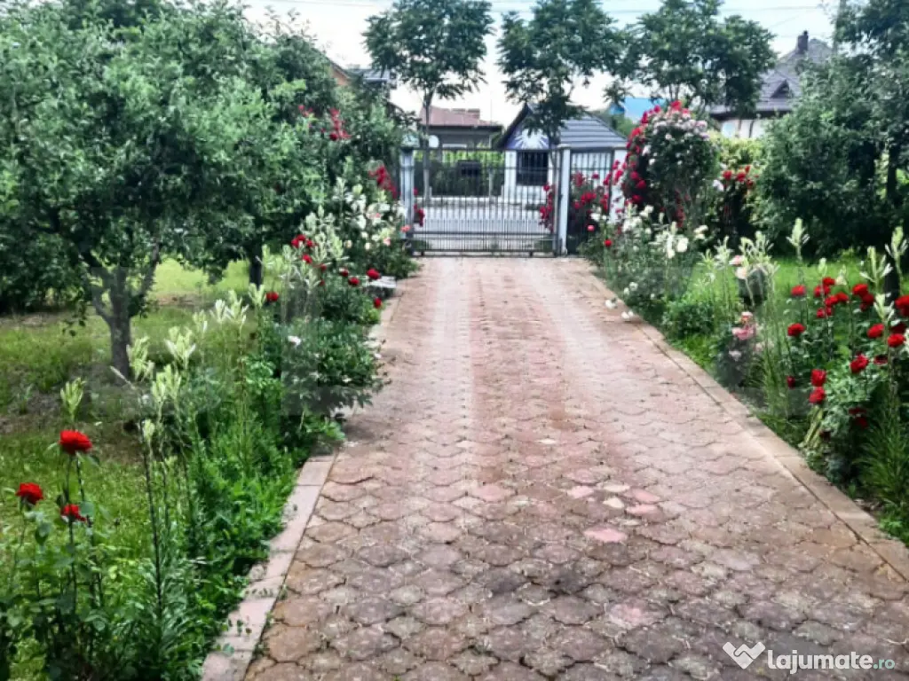 ✔ Curte amenajată cu flori mature și pomi fructiferi