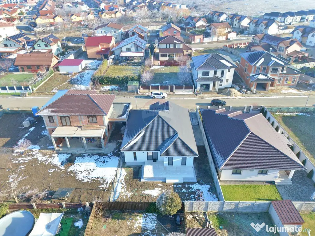 RE/MAX Dynamic vă propune spre vânzare, în exclusivitate, o casă situată în cartierul Via Carmina, comuna Vladimirescu, județul Arad. Proprietatea, decomandată, are următoarele caracteristici: • Suprafață: 170 mp construiți (din care 22 mp terasă descoperită) / 123 mp utili • An construcție: 2025 • Utilități: curent electric, gaz, apă, canalizare • Compartimentare: 4 camere (living și 3 dormitoare), dressing, bucătărie, cameră de alimente, hol, 2 băi și terasă descoperită Alte informații: 2,70 m înălțime interioară, acces în pod din interior, tâmplărie PVC (gri antracit), încălzire prin pardoseală, acoperiș țiglă (gri antracit), front stradal 15,46 ml., în curte regăsim instalație de apă forată și sistem de irigații etc. Vă invit la vizionare! Număr niveluri imobil: mai mult de 12 Număr Băi: 2 Posibilitate parcare: Da Nr. locuri parcare: 4 Curent Apă Canalizare Gaz Încălzire