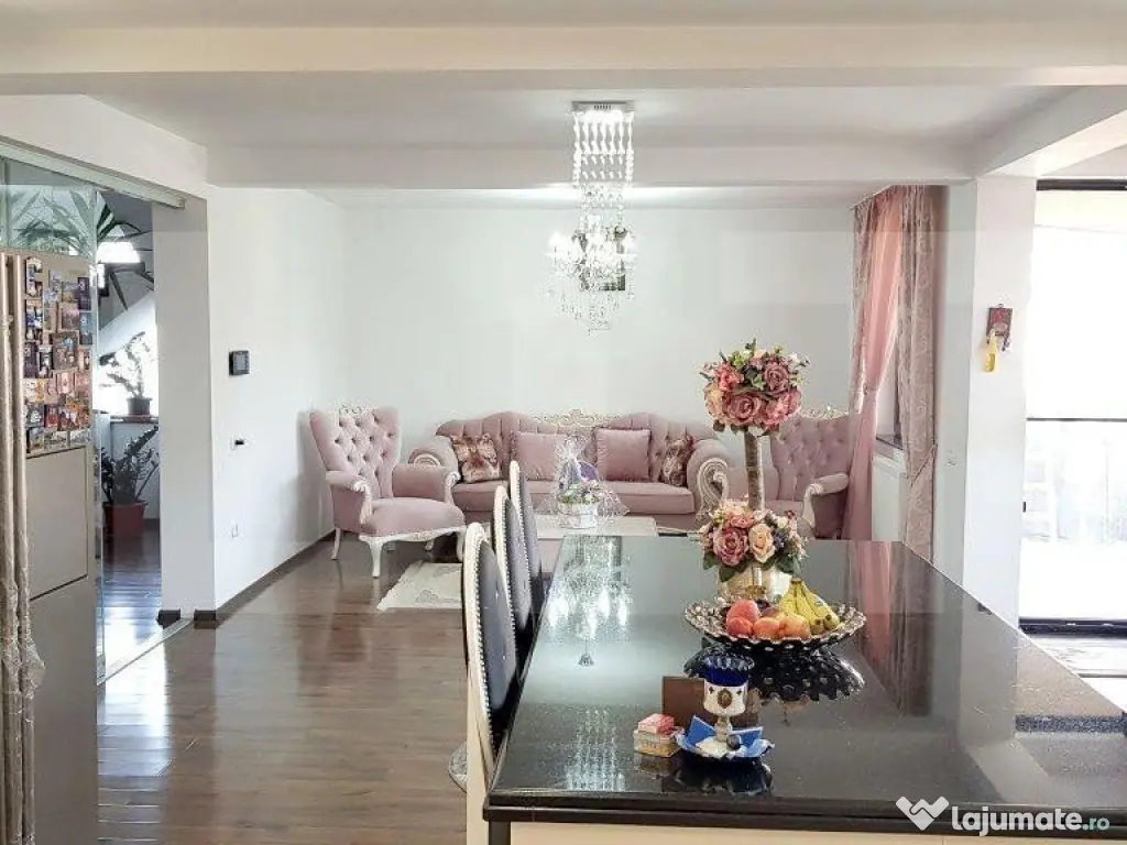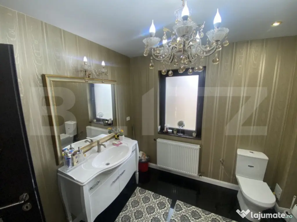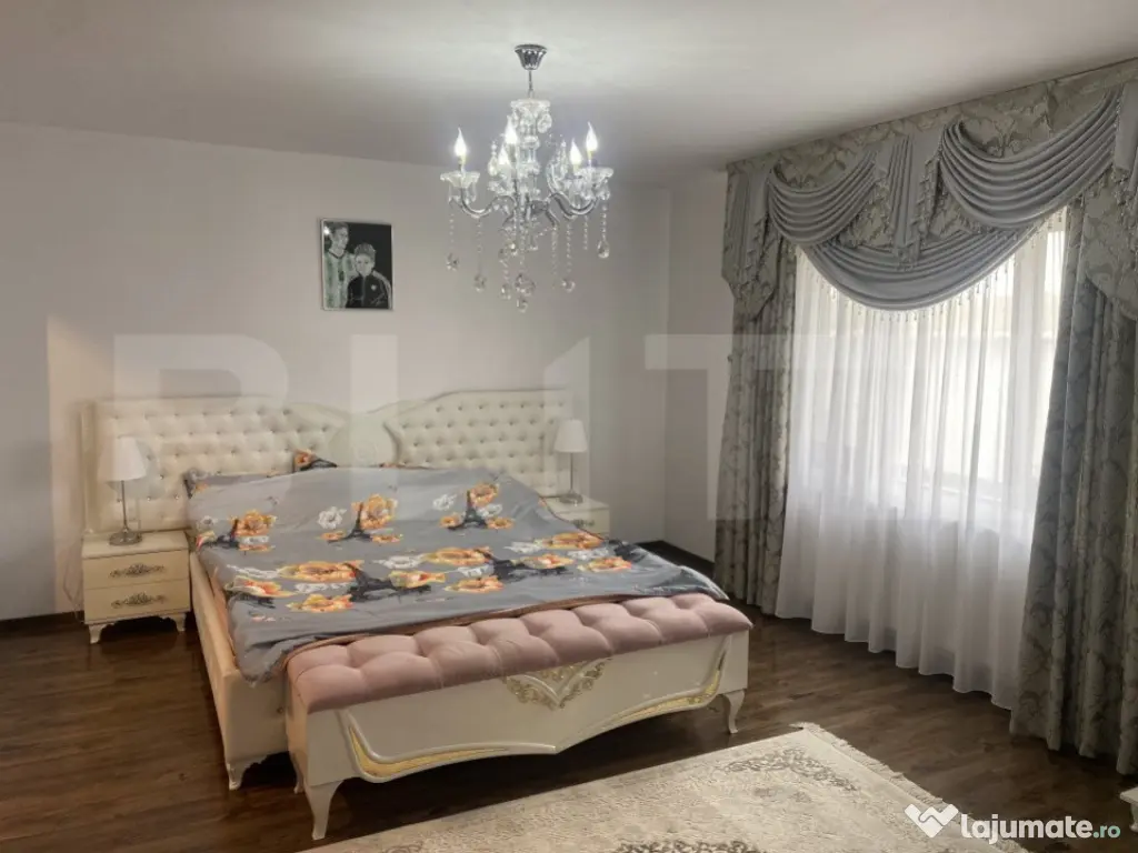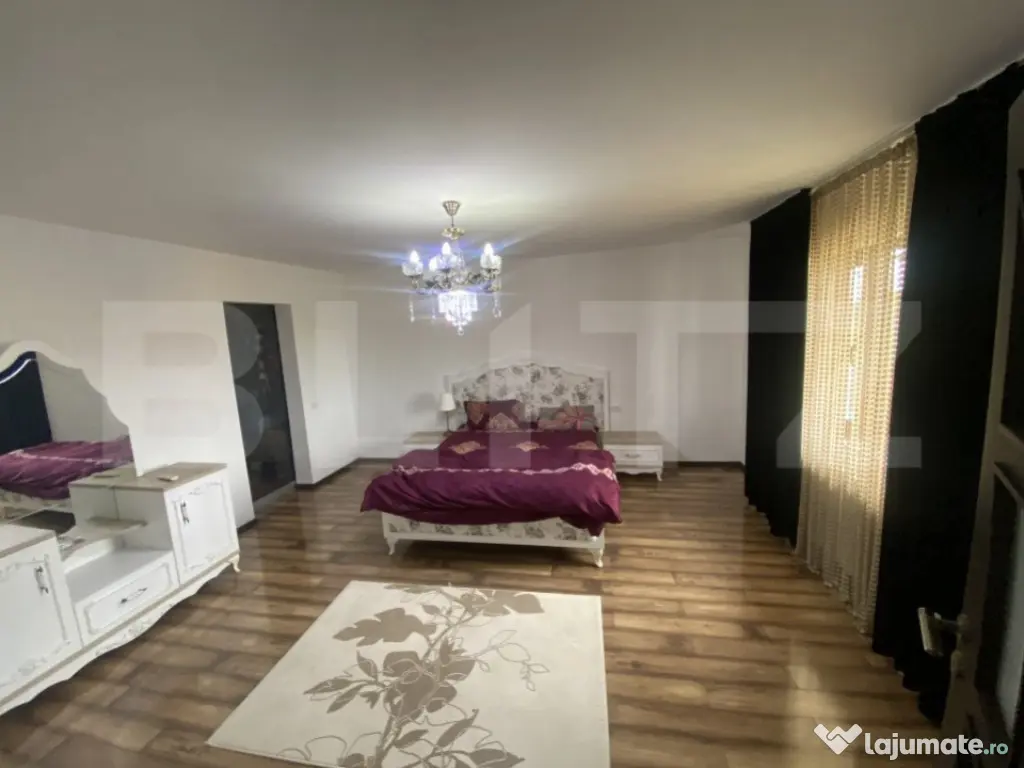 Blitz propune spre vanzare o casa cu 5 camere cu o suprafata de 280 mp utili. Compartimentarea acesteia se prezinta astfel: Parter: living, spatiu de luat masa, bucatarie open-space, baie, dormitor cu dressing, camera tehnica, hol intrare spatios. Etaj: 3 dormitoare (2 din ele cu dressing), baie cu jacuzii, 2 terase, hol mare, scara interioara care duce spre mansarda unde se poate amenaja cupa bunul plac. Casa se vinde complet mobilata si utilata cu toate cele necesare. Terenul aferent are 500 mp. In curte este spatiu amenajat pentru gratar, piscina, tenis. Cod ofertă / ID BLITZ: P14042 Id intern: P14042 Număr niveluri imobil: 2 Număr Băi: 2 Nr. locuri parcare: 2 Curent Apă Gaz