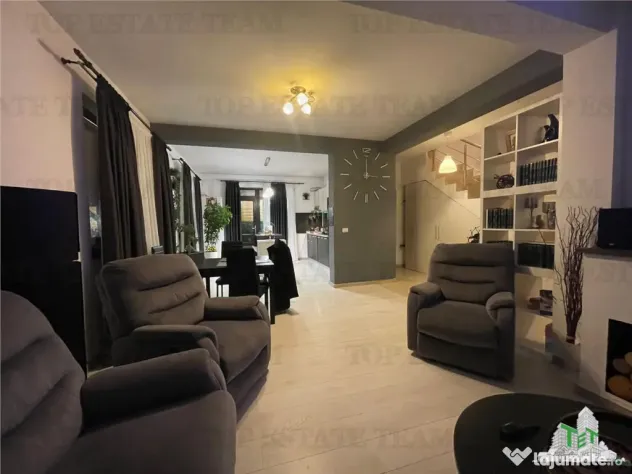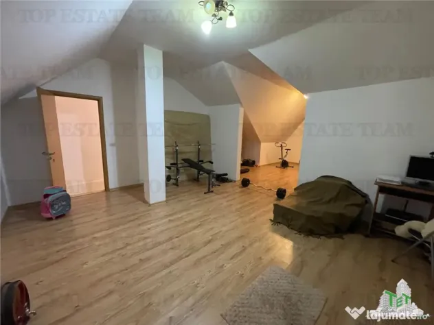 Dispune de 3 dormitoare, living foarte generos, mansarda amenajata de cca 40 mp, doua grupuri sanitare cu geam, finisaje de calitate, centrala termica pe gaz.