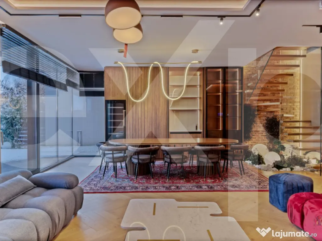 Va propunem o vila superba la vanzare. suprafata teren -450 mp suprafata construita la sol- 140 mp. suporafata construita totala 435 mp. (P+2) suprafata utila / etaj 110 mp. suprafata curte libera 310 mp Vila se vinde mobilata si utilata Vila are parter + etaj 1 + terasa si piscina etaj 2 vila are bucatarie + dining + living - 53 mp 3 dormitoare si 4 bai + birou /camera bona 2 locuri de parcare in fata imobilului. Vila este dispusa la parter- bucatarie /dining/ living / grup sanitar/ birou/ camera tehnica- 110 mp utili + terasa curte 30 mp = total 140 mp la etaj 1 - 3 dormitoare cu 3 bai = 110 mp utili + 2 balcoane de 20 mp = 130 mp utili la etaj 2- deck- piscina- terasa - 120 mp Particularități ale vilei. - pompa de căldura cu recuperare de căldura - răcire in tavane - încălzire si răcire in podea - aport de aer proaspăt din exterior in interior si extragere aer viciat - aspirator prin pereți - KNX si automatizări pentru controlul: lumini/ căldura/ draperii-perdele/ etc - senzori efracție - camere video Vila dispune de cel mai înalt nivel de automatizări din piața la ora actuala Se vinde de catre persoana fizica nu zse percvepe TVA Id intern: EXP512 Număr niveluri imobil: 2 Număr Băi: 4 Comision cumpărător: 2% Nr. locuri parcare: 2 Curent Apă Canalizare Sistem irigaţie