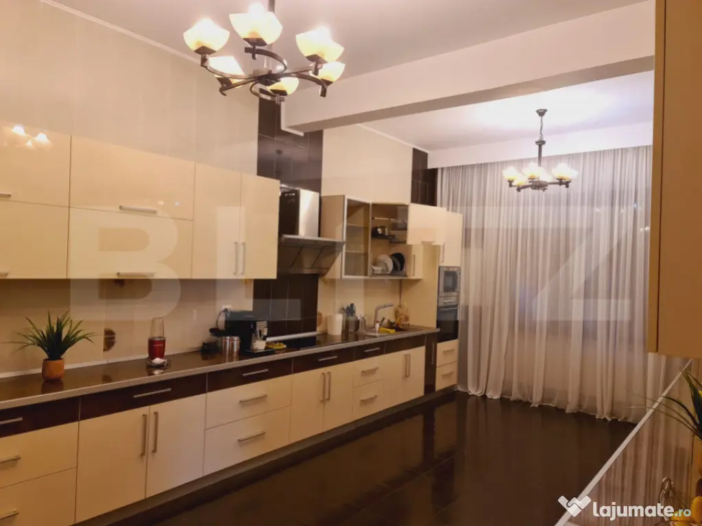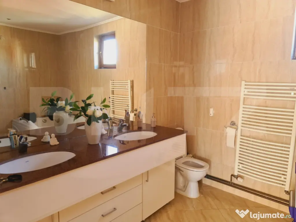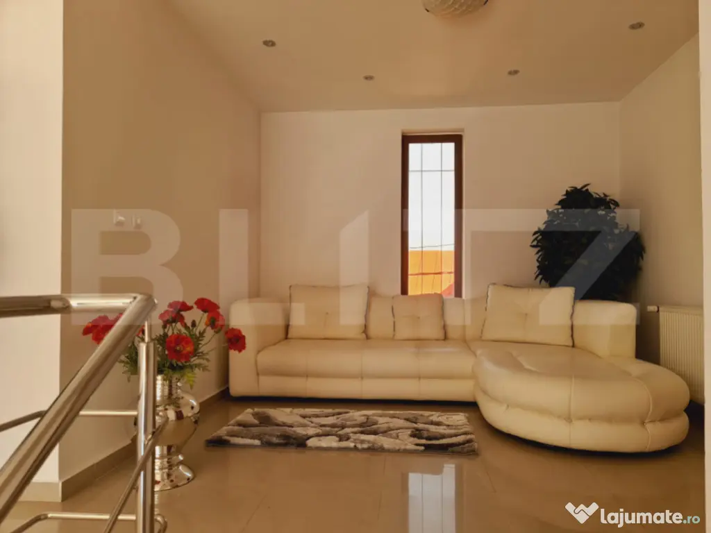 Blitz vă propune spre închiriere o vilă de lux, situată într-una dintre cele mai exclusiviste și istorice zone din Târgoviște, județul Dâmbovița. Proprietatea impresionează prin eleganță, rafinament și confort, fiind alegerea ideală pentru cei care își doresc un stil de viață modern într-un cadru cu tradiție și prestigiu. Vila se desfășoară pe o suprafață utilă de 350 mp, amplasată pe un teren generos de 700 mp, și este construită cu materiale de înaltă calitate și finisaje premium, asigurând un ambient deosebit și funcționalitate perfectă. Compartimentare: -Parter: hol spațios de primire, living elegant și luminos, baie modernă, bucătărie complet utilată cu zonă de dining și un birou perfect pentru lucru sau studiu. -Etajul 1: 5 dormitoare generoase, hol central, 2 băi moderne și un balcon cu vedere frumoasă către împrejurimi. -Mansardă: sală de fitness și baie suplimentară. Dotări și facilități: -Centrală termică, calorifere, apă curentă, gaze, electricitate, internet și cablu TV; -Ferestre termoizolante și finisaje de lux; -Curte amenajată cu spațiu verde, terasă exterioară și zonă de relaxare; Locuri de parcare disponibile. Proprietatea este amplasată într-o zonă istorică prestigioasă, aproape de principalele puncte de interes ale orașului – Curtea Domnească, Turnul Chindiei, Muzeul de Istorie, dar și de restaurante, instituții și zone verzi. Cod ofertă / ID BLITZ: P155953 Id intern: P155953 Număr niveluri imobil: 2 Număr Băi: 4 Curent Apă Canalizare Gaz
