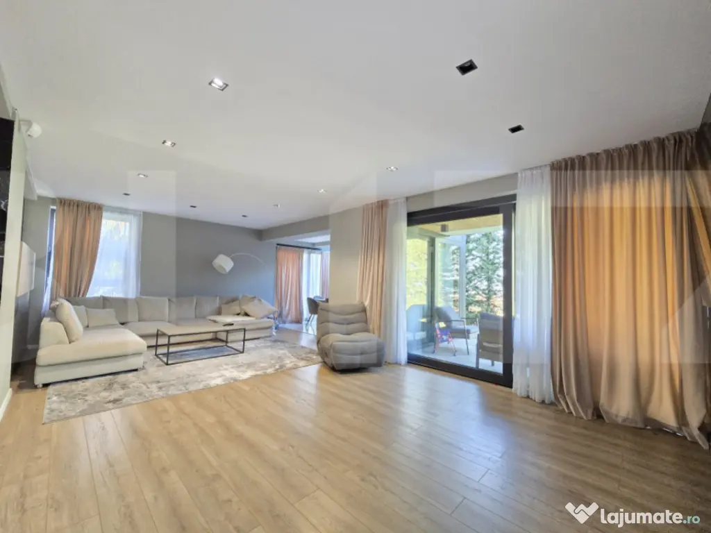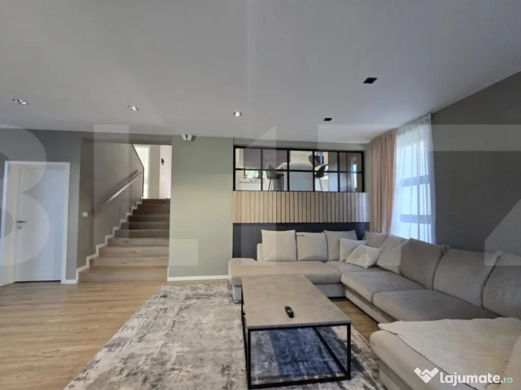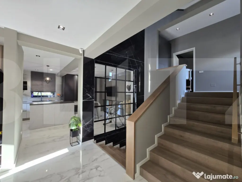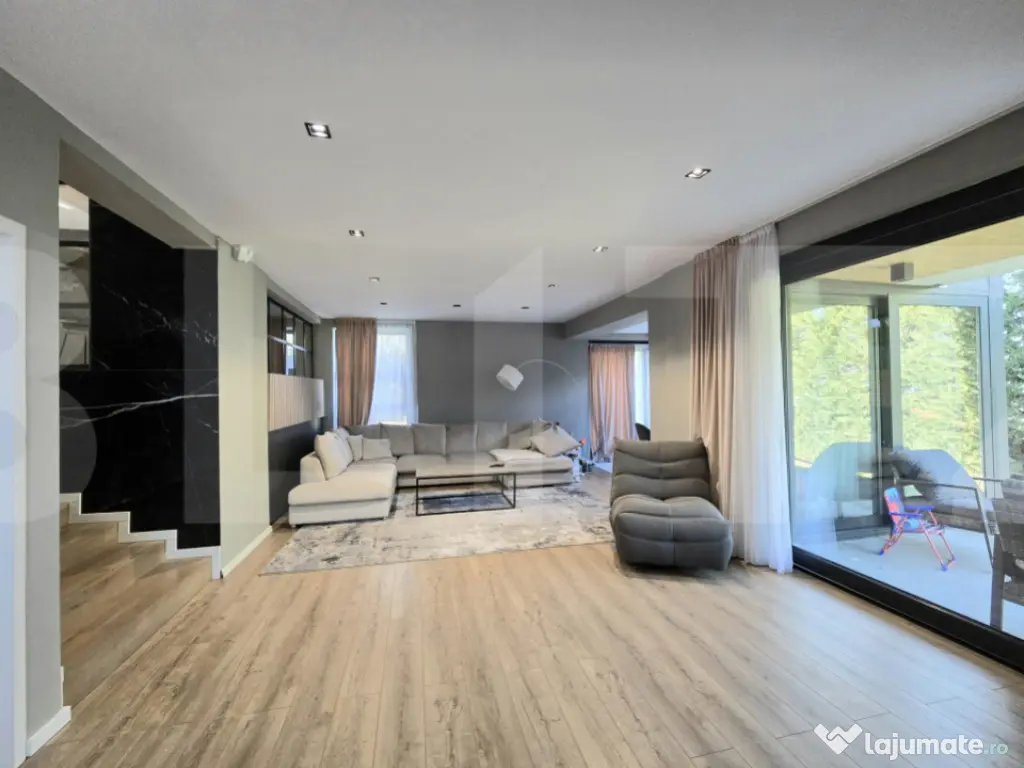 Vă propunem spre vânzare o casă individuală, situată într-unul dintre cele mai verzi și liniștite cartiere din Cluj-Napoca – cartierul Făget. Această proprietate beneficiază de o locație deosebită, face parte dintr-un ansamblu securizat, este perfectă pentru cei care doresc să trăiască in mijlocul naturii, fara a fi prea departe de centrul orasului, cu acces direct la drum principal și mijloace de transport public. Detalii proprietate: * Regim de înălțime: Subsol+ Parter + Etaj + Etaj Retras * Suprafață utilă: 325 mp * Terasa 35 mp * Teren: 1000 mp Compartimentare: * Subsol: o sala de sport, un birou, o baie, o uscatorie, camera tehnica. * Parter: Living cu zona de luat masa si acces pe terasa din spate, bucataria, baia , accesul in garaj. * Etaj: dormitor matrimonial cu dressing și baie cu duş walk-in si cada pentru 2 persoane *Etaj retras: un dormitor cu baier, un alt dormitor cu dressing si baia proprie. * Ultimul nivel unde se afla terasa de aproximativ 35 mp cu o priveliste spre tot orasul * Casa a fost conceputa si construita in 2020 pentru a putea fi locuita si de catre o familie extinsa. * Finisaje premium și detalii care definesc eleganța: * Finisaje de cea mai bună calitate, fiecare detaliu fiind atent gândit pentru a oferi confort și rafinament. * Mobilier realizat pe comandă , ce conferă casei un aer sofisticat și funcțional, electrocasnice de inalta calitate. * Fiecare cameră este proiectată pentru a maximiza spațiul și a crea acel sentiment, pe care toti ni-l dorim, de „ACASĂ”. Zona exterioară – Punctul forte al proprietății: - spatiu suficient sa petreci timpul cu familia si prietenii , suficient spatiu si pentru a se construi o piscina. * Parcare exterioara pentru 3 masini + Garajul. Locație: foarte accesibil in spre oras, zona de case private cu acces prin bariera. Cartierul Făget este o zonă deosebită, exclusiv de case, inconjurata de padure, amenajata cu trasee turistice, ideală pentru cei care iubesc natura si doresc sa traiasca o viata mai linistita, relaxata si nepoluata. Pentru mai multe informatii sau stabilirea unei vizinari va stam la dispozitie. Cod ofertă / ID BLITZ: P158266 Id intern: P158266 Număr niveluri imobil: 1 Număr Băi: 4 Nr. locuri parcare: 4 Curent Apă Canalizare Gaz Climă