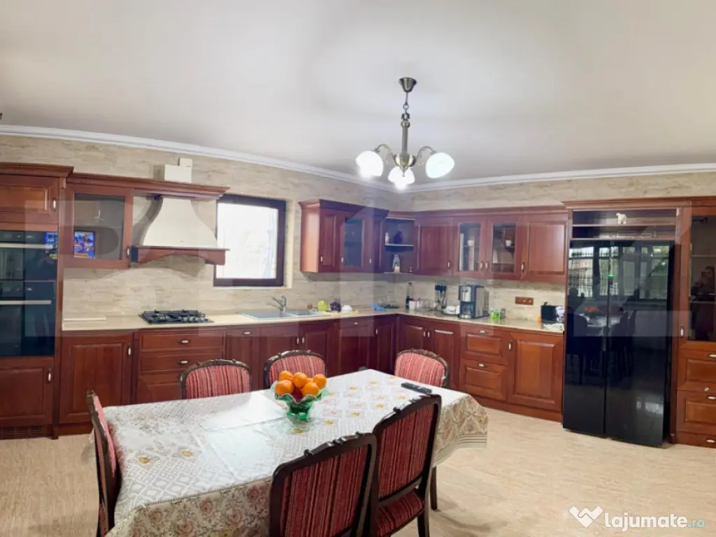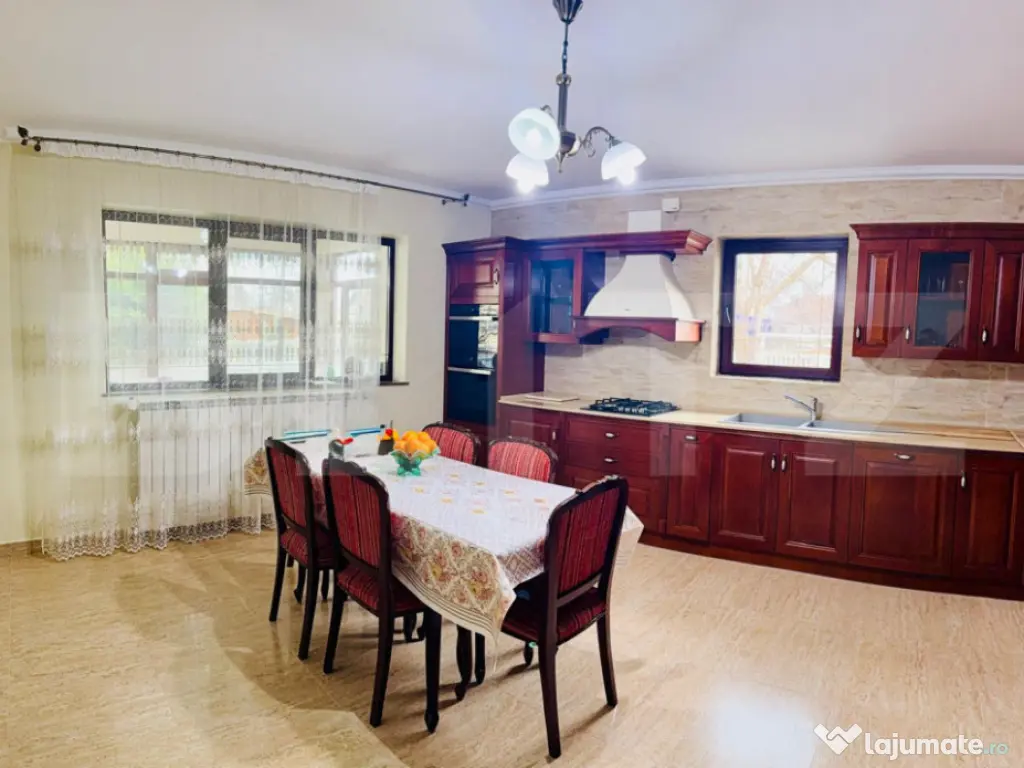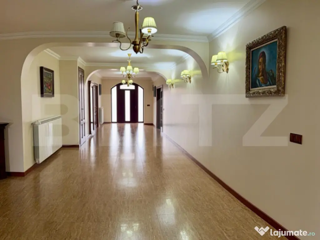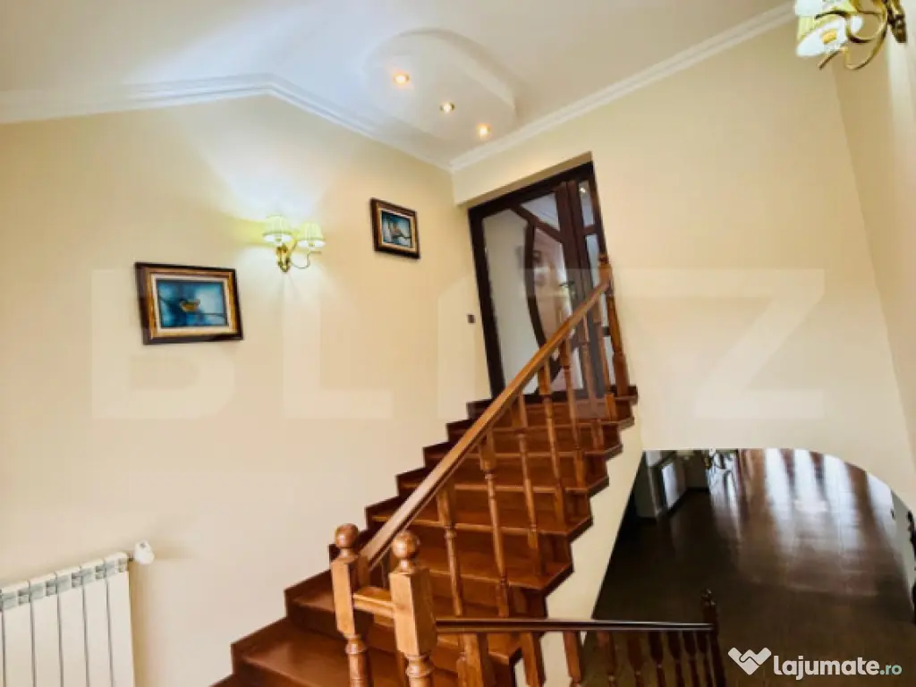 Blitz vă prezintă spre vânzare, cu COMISION 0 pentru cumpărător-o reședință remarcabilă, o vilă impunătoare ce îmbină perfect eleganța, spațiul și funcționalitatea, situată în Găești – o proprietate care se adresează celor ce își doresc un stil de viață confortabil, rafinat și complet. Cu o suprafață construită de 369 mp și un teren de 959 mp, această vilă oferă o prezență puternică, o atmosferă caldă și un nivel de confort greu de regăsit într-o ofertă standard. Este genul de proprietate care nu se rezumă doar la “o casă mare”, ci la o locuință gândită pentru un trai de calitate, pe termen lung. Un interior amplu, luminos și impecabil organizat Compartimentarea este una excelentă, cu spații generoase și bine echilibrate, astfel încât locuința să ofere atât zone de intimitate, cât și spații ideale pentru familie, oaspeți și momente speciale: 7 dormitoare – perfecte pentru familie numeroasă, birouri, camere de oaspeți, dressinguri sau zone de hobby 3 băi – confortabil distribuite, pentru un stil de viață practic și modern bucătărie mare, un spațiu central al casei, ideal pentru cine în familie și socializare holuri ample, care oferă senzația de “respirație” a casei și un plus de eleganță terasă închisă, un spațiu premium de relaxare, utilizabil în orice anotimp cameră tehnică, indispensabilă într-o proprietate completă garaj + anexă, utile pentru depozitare, organizare și funcționalitate Un element definitoriu al acestei vile este scara interioară din lemn masiv, care adaugă o notă distinctă de rafinament și soliditate, completând perfect stilul interior. Curte amenajată – imagine impecabilă și confort exterior Exteriorul este pe măsura interiorului: curtea este amenajată cu pavaj și spații verzi, oferind un cadru ordonat, elegant și ușor de întreținut. Terenul de 959 mp oferă spațiu suficient pentru relaxare, zone decorative, foișor, barbeque sau amenajări personalizate, păstrând în același timp intimitatea și echilibrul proprietății. Proprietate completă – gata de mutare Un avantaj major este faptul că vila se vinde complet mobilată, ceea ce o transformă într-o alegere ideală pentru cei care își doresc o mutare rapidă, fără bătăi de cap și fără investiții suplimentare. Locuința dispune de utilități, iar starea generală este excelentă – o proprietate modernă, îngrijită, care oferă siguranță și confort încă din prima zi. Concluzie Această vilă este o oportunitate rară pe piață: o proprietate amplă, elegantă și completă, perfectă pentru: ✔ familie numeroasă ✔ două generații ✔ rezidență premium ✔ investiție ???? Vă invităm la vizionare pentru a descoperi în realitate proporțiile, atmosfera și calitatea acestei proprietăți. Cod ofertă / ID BLITZ: P164230 Id intern: P164230 Număr niveluri imobil: 1 Număr Băi: 3 Curent Apă Canalizare Gaz