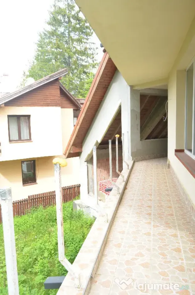 Va prezentam un imobil situat pe o strada linistita si plina de verdeata situata in Predeal,o vila superba situata intr-una dintre cele mai pitoresti zone din Predeal,Cioplea. Aceasta proprietate generoasa se afla pe un teren de 597 mp si are un regim de inaltime D+P+E+M, oferind spatiu si confort pentru intreaga familie.Are cinci camere,living,bucatarie,doua garaje in incinta proprietatii,unul coperit si unul terestru.Demisol:terasa acoprita,camera,windfang,bucatarie,baie,hol,casa scariiLa parter casa dispune de un hol de acces primitoare, o baie moderna, un living spatios si luminos, ideal pentru momentele de relaxare in familie, precum si o bucatarie ,birou,acces iesire balcon acoperit.Etajul unde veti gasi un dormitor spatios ,luminos cu o panorama spectaculoasa,balcon,camera de studiu ,sas,baie,hol,balcon confortabil, fiecare oferind intimitate si confort, terase panoramice.Mansarda are doua balcoane,dormitor,baie,spatiu relaxare.Suprafata utila este de 287 mp pe o amprenta de 161 mp.