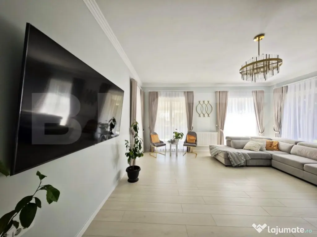 Vă oferim spre vânzare o vila modernă, deosebită, situată în Sântandrei, la doar 7 km de centrul Oradei. O locuință amplasată într-o zonă liniștită, cu front stradal de 25 metri, ce se remarcă prin spațiile generoase, finisajele de lux și dotările de înaltă calitate. Detalii imobil: Suprafață construită: 750 mp Amprenta la sol: 250 mp Suprafață utilă: 500 mp Curte: 750 mp (amenajată cu gazon, pomi fructiferi și pavele) Garaj propriu, cu 2 locuri de parcare, plus locuri de parcare suplimentare în curte și în fața casei. Acoperiș din țiglă, clădire izolată eficient. Structură imobil: Beton+caramida. Demisol înalt: Bucătărie complet utilată, două debarale, camera perfectă pentru amenajarea unei săli de sport sau bar, living spațios, loc de luat masa, terasă închisă, garaj cu două intrări separate. Parter: Hol de acces, living luminos, bucătărie open space, două băi, două dormitoare, terasă exterioară. Etaj: Casa scării, două dormitoare mari, dressing, spălătorie de haine, baie. Dotări de lux: Centrale Ariston pe gaz moderne, câte una pe fiecare nivel (3 centrale). Mobilier și electrocasnice de cea mai înaltă calitate: plite cu inducție, hote premium, totul fiind dotat cu cele mai bune aparate. Multiple spații de depozitare interioare, pentru un trai ordonat și fără compromisuri. Facilități suplimentare: Stradă asfaltată, cu toate utilitățile disponibile (apă, gaz, curent electric, internet). Locație ideală pentru o familie care își dorește confortul unei vile moderne, dar aproape de toate facilitățile orașului. Curte amenajată cu pomi fructiferi, ideală pentru relaxare în aer liber. Preț: Poziționată într-o zonă premium, cu un mix perfect de spațiu și confort, această vilă de lux este gata să devină acasa dumneavoastră! Nu ratați ocazia de a deveni proprietar al acestei vile superbe! Contactați-ne pentru detalii suplimentare și programarea unei vizionări. Cod ofertă / ID BLITZ: P139213 Id intern: P139213 Număr niveluri imobil: 1 Număr Băi: 4 Nr. locuri parcare: 3 Curent Apă Canalizare Gaz Climă