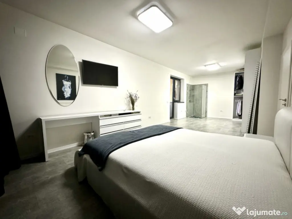 ???? Casă modernă cu influențe mediteraneene – construcție solidă, teren generos și potențial de extindere Vă propunem spre vânzare o casă elegantă, cu arhitectură de inspirație mediteraneană, amplasată pe un teren de 380 mp, cu o deschidere de 20 ml la stradă. Proprietatea se remarcă printr-un design modern, proporții echilibrate și o construcție realizată cu o atenție deosebită pentru calitate și durabilitate. Casa dispune de o suprafață utilă de 80 mp pe nivel, fiind construită integral din beton și cărămidă, cu trei plăci de beton și o structură de rezistență solidă, ce include 17 tone de fier supradimensionat. Această execuție robustă oferă siguranță, stabilitate și posibilitatea de extindere ulterioară sau mansardare, conform proiectului tehnic. ???? Detalii constructive și avantaje: Construcție nouă, realizată cu materiale de cea mai bună calitate Teren de 380 mp – curte generoasă, cu posibilitate de amenajare grădină, foișor sau piscină Acces facil și poziționare excelentă pe stradă liniștită și civilizată Proiect arhitectural cu linii mediteraneene, ce combină eleganța cu funcționalitatea Structură ideală pentru locuință de familie, birou rezidențial sau investiție imobiliară ???? Compartimentare: Parter: -living open-space generos (posibilitate de compartimentare la cerere) -bucătărie mobilată -baie complet utilată -hol de intrare și casa scării Etaj: -3 dormitoare -2 băi (una pe hol, una în dormitorul matrimonial) -se vinde complet mobilată ???? Spații și anexe: -Garaj 40 mp (construit din cărămidă, placă de beton, ușă automată de 5 m lățime) – loc pentru 2 mașini Mentionez ca garajul se poate transforma in spatiu de locuit / spatiu comercial /cabinet stomatologic / atelier etc. -Parcare suplimentară pentru 2 mașini în curte -Terasa închisă de 35 mp, cu încălzire în pardoseală, centrală proprie pe gaz (separata de cea a casei), aer condiționat și bucătărie complet utilată – ideală ca a doua zonă de gătit sau spațiu de relaxare -Terasa exterioară acoperită de 20 mp, decorată cu verdeață ???? Detalii tehnice: -Structură din beton armat și pereți de cărămidă de 30 cm -Acoperiș din țiglă modernă neagră, cu șarpantă din beton izolat -Izolație exterioară și tencuieli interioare de calitate -Încălzire în pardoseală la parter, etaj și terasă -Scară interioară din beton placată cu marmură -Panou solar pentru apă caldă menajeră -Tâmplărie aluminiu cu geam tripan și reflexie solară -Instalație electrică subterană 380V -Puț propriu pentru irigarea grădinii ???? Localizare: Situată într-o zonă liniștită, aproape de Cartierul One Lake, Șos. Gherghitei și Colentina, cu acces rapid către autostrada A3, Pipera și transportul public (autobuz 382, stație în apropiere). ???? Documentație completă: -Carte a Constructorului -Recepție finală a construcției -Cadastru și intabulare -Certificat energetic -Eligibilă pentru finanțare bancară Această proprietate este alegerea perfectă pentru cei care caută o casă nouă, sigură, bine proporționată și cu potențial de dezvoltare, într-o zonă cu acces rapid către oraș și liniște deplină. O proprietate solidă, confortabilă și versatilă, perfectă pentru o familie care apreciază spațiul, calitatea construcției și accesul facil către oraș si totodata, pentru sediu de firma, clinica sau after-school. ???? Pentru mai multe detalii sau programarea unei vizionări, vă invităm să ne contactați — proprietatea merită văzută pentru a-i simți cu adevărat potențialul. Id intern: P838 Număr niveluri imobil: 1 Număr Băi: 2 Comision cumpărător: 2% Nr. locuri parcare: 4 Curent Apă Canalizare Gaz Climă