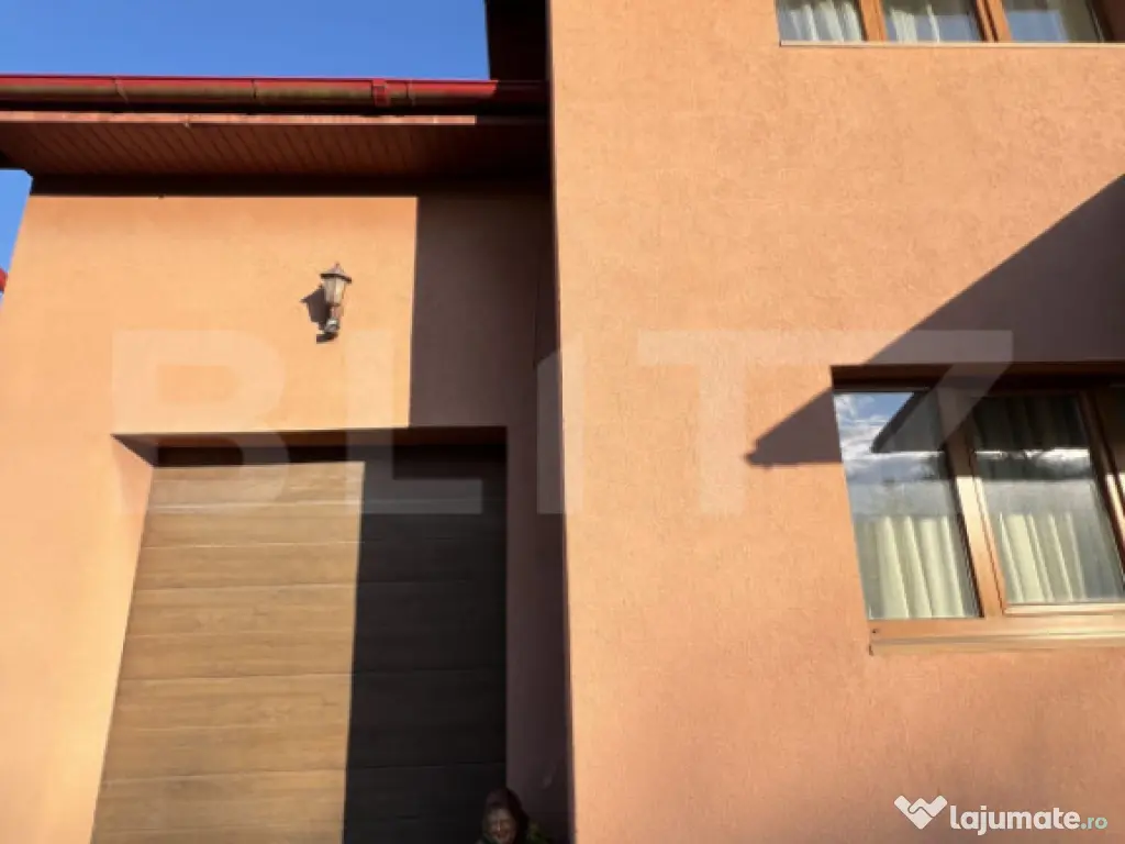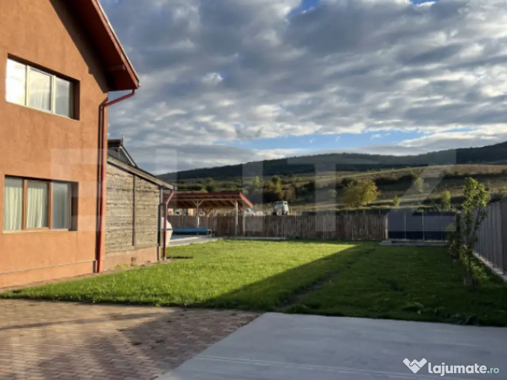 BLITZ vă propune spre vânzare o casă individuală cu piscină și priveliște panoramică spre pădure, situată într-o zonă de excepție a localității Chinteni. Vila este construită pe două niveluri, într-o zonă liniștită din Chinteni, oferind un cadru ideal pentru cei care își doresc un spațiu generos și o conexiune directă cu natura, fiind amplasată pe un teren vast de 750 mp. Suprafața utilă de 195 mp este optim compartimentată pentru a asigura confort și funcționalitate. La parter vila dispune de un living spațios, cu ferestre mari ce permit pătrunderea luminii naturale, este ideal pentru momente de relaxare și petrecerea timpului cu familia sau pentru seri de cinema. Bucătăria open-space, dotată la standarde înalte este integrată cu zona de dinning, oferind un spațiu deschis și primitor pentru gătit și servit masa alături de familie sau celebrarea unor evenimente. Terasa acoperită de la parterul vilei oferă locul perfect pentru a savura cafeaua de dimineață sau admira asfințitul, beneficiind și de o saună uscată pentru relaxare. Proprietatea este amplasată într-o zonă bine conectată la 10 minute de Cluj-Napoca, pe o stradă privată, asigurând acces facil către facilități și infrastructură. Cele trei dormitoare de la etaj sunt confortabile și luminoase, beneficiind de o baie complet utilată, modernă și funcțională. Accesul la etaj se face prin intermediul unei scări elegante din lemn, ce adaugă un plus de rafinament interiorului, în ton cu parchetul din lemn masiv de stejar în stare excepțională. Curtea cu o suprafață generoasă, este perfectă pentru joaca copiilor în natură, amenajări peisagistice, grădinărit sau relaxarea în aer liber la piscina dotată cu sistem profesional de filtrare a apei și panouri solare pentru încălzirea apei. În curte este amenajat și un loc pentru grătare sau pentru focuri de tabără. Casa dispune de o poartă de intrare automatizată și de un garaj dotat cu ușă acționată prin telecomandă, cu acces în living. Pentru mai multe detalii sau pentru a programa o vizionare, vă rugăm să ne contactați. Echipa BLITZ vă stă la dispoziție! Cod ofertă / ID BLITZ: P154421 Id intern: P154421 Număr niveluri imobil: 1 Număr Băi: 2 Nr. locuri parcare: 3 Curent Apă