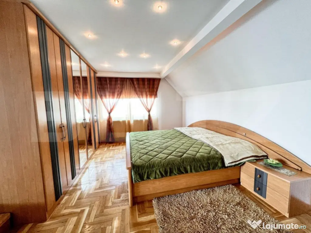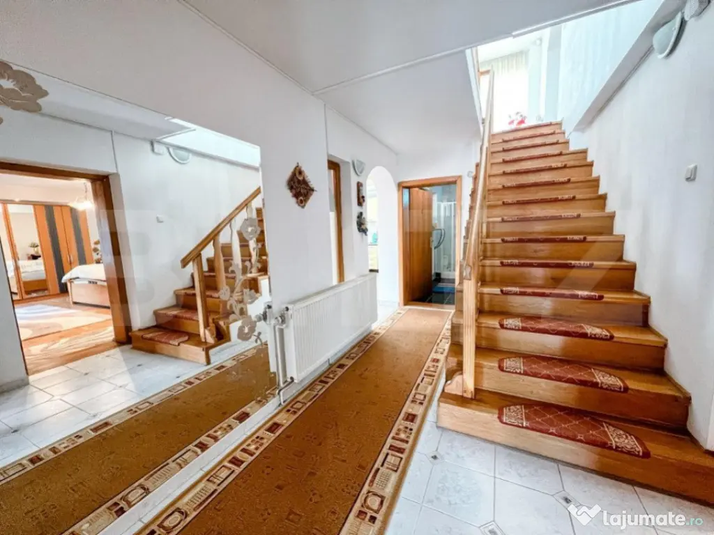 Te invit sa descoperi o locatie unica in Codlea, unde intimitatea se afla la ea acasa! Ne aflam in orasul Codlea, care se afla la o distanta de 10km de Brasov, unde vei gasi o atmosfera de relaxare si o proprietate deosebita care asteapta sa fie adusa la urmatorul nivel printr-un nou proprietar cu o noua viziune. Aici vei descoperi o oaza de liniste, situata intr-o vale la marginea padurii din zona de agrement ,,Maial". Pe un teren in suprafata de 1800mp, vei descoperi o cladire individuala cu un regim de inaltime D+P+E+M construita complet din cadre din beton si caramida, avand 8 camere spatioase cu priveliste superba catre oras. - Parterul : este compus din veranda spatioasa, hol cu casa scarii, living open-space cu bucataria care dispune si de camara, dormitor matrimonial foarte spatios, birou/dormitor, baie de serviciu. - Etajul: este format din 3 dormitoare, sufragerie / salon foarte spatios de 57mp, bucatarie, baie. De la etaj este acces la o terasa de 42,7 mp amenajata cu loc de barbeque. - Mansarda: este compusa din living cu acces pe terasa (priveliste deosebita) si un dormitor cu baie proprie. Casa dispune si de un demisol format din camera tehnica si spalatorie. Podul de asemenea spatios, cu posibilitate de mansardare. La intrarea pe proprietate, gasim si un Garaj pentru 2 masini. Din punct de vedere juridic, imobilul este intabulat si cu toate actele la zi. Proprietatea ofera si un confort sporit din punct de vedere al utilitatilor, fiind racordata la toate. (apa, gaz, curent electric, canalizare). Incalzirea se realizeaza prin calorifere cu centrala proprie pe gaz prin condensatie. Daca ti-am starnit interesul, va asteptam la o vizionare pentru a vedea cu adevarat potentialul acestei proprietati! Cod ofertă / ID BLITZ: P4414 Id intern: P4414 Număr niveluri imobil: 2 Număr Băi: 3 Nr. locuri parcare: 4