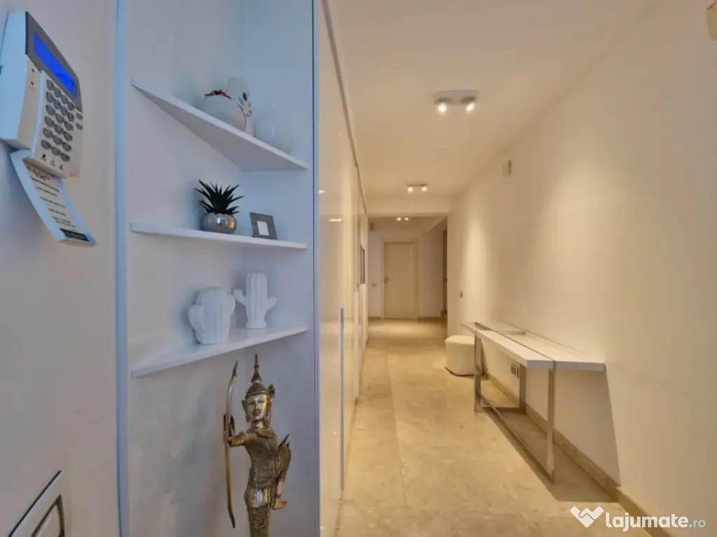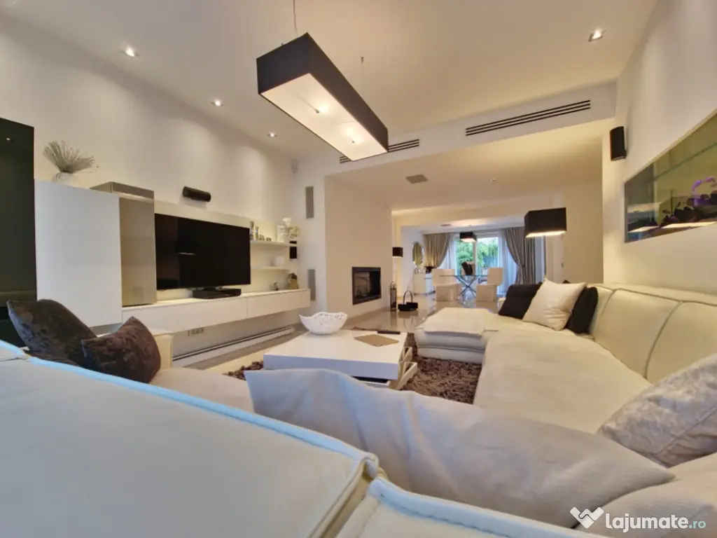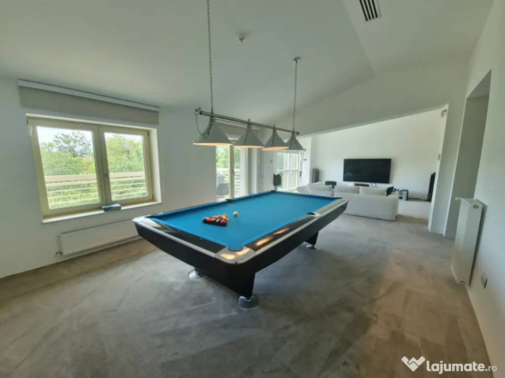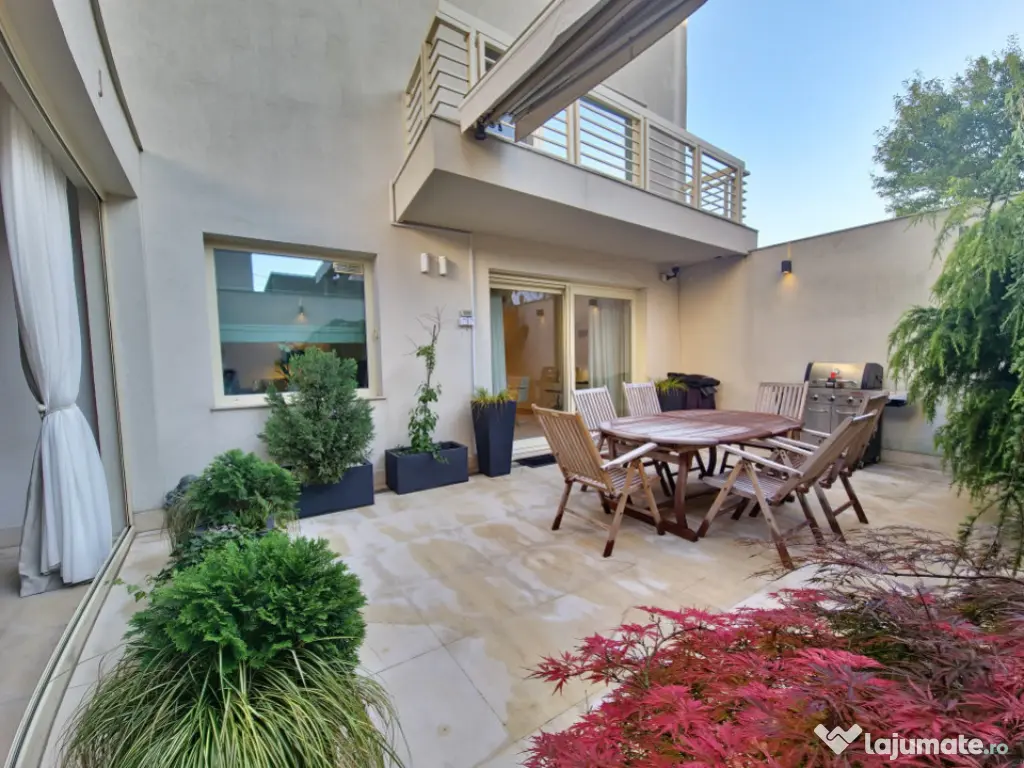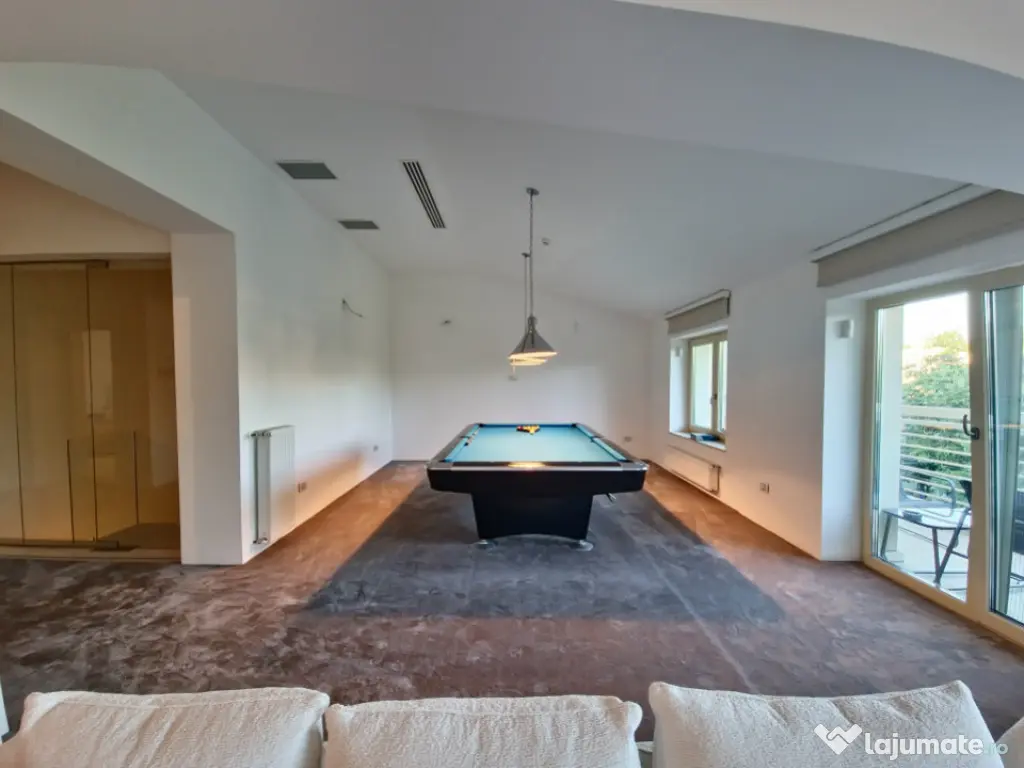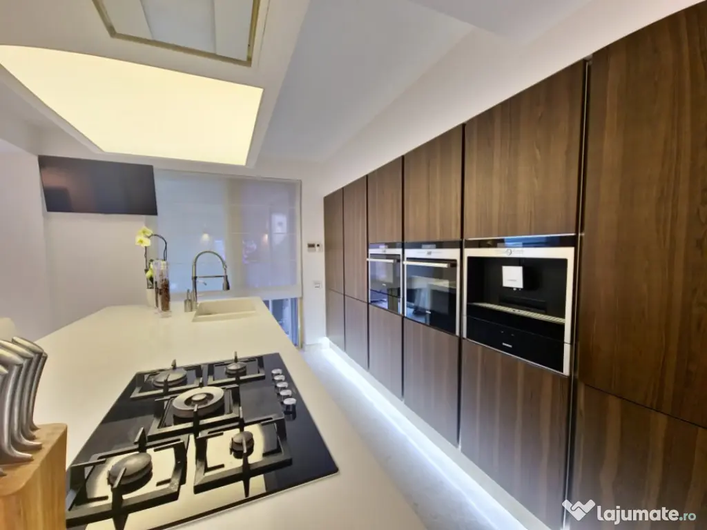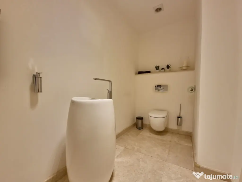 Vă prezentăm o proprietate de excepție, o vilă modernă, elegantă și rafinată, situată într-una dintre cele mai apreciate zone ale Constanței – Faleza Nord. Această locuință impresionează prin designul său contemporan, finisajele premium și mobilierul de lux de la Cattelan Italia, toate incluse în prețul de vânzare. Pe un teren generos de 280 mp, cu o deschidere de 11 m, vila este construită pentru a oferi confort și funcționalitate maximă, ideală atât pentru familii, cât și pentru cei care doresc să îmbine spațiul de locuit cu un birou de acasă, bine delimitat. Structura proprietății: -Demisol: Suprafață de 56.20 mp, completată de un garaj cu capacitate pentru două mașini (66.50 mp), camera tehnică, care include și o instalație de dedurizare a apei, spălătorie, cameră frigorifică, camera centralei și spații suplimentare de depozitare. - Parter: Suprafață utilă de 129.70 mp, completată de o terasă acoperită de 50 mp. Parterul este compus dintr-un living generos , dormitor , wc serviciu , bucatarie open space cu iesire pe terasa . Dotari precum mobilier Rovere, iluminat Philips, șemineu Spartherm, sistem de climatizare Daikin (prezent în întreaga casă), încălzire în pardoseală (restul casei dispune de calorifere), pardoseală din marmură, acvariu de 800 litri, videointerfon, monitorizare video pe exteriorul casei, iar curtea este pavată cu piatră naturală. Bucătăria are mobilier Veneta Cucine, cu fronturi din furnir natural, dotată cu două cuptoare (unul cu aburi și unul cu ventilație), iar toate electrocasnicele sunt Siemens. - Etaj: Suprafață utilă de 120.50 mp, plus două terase (4.6 mp și 7.3 mp), însumând 140.20 mp. Oferă hol, dormitor matrimonial cu grup sanitar propriu și dressing, living și al doilea dormitor cu baie privată. - Mansardă: Suprafață de 128.80 mp, la care se adaugă un balcon de 7.6 mp, având un dormitor cu baie proprie, un living spațios – zonă de relaxare, și un grup sanitar suplimentar. Pentru mai multe detalii despre această proprietate, vă rugăm să ne contactați . Iulian Băcioiu Id intern: P154050 Număr niveluri imobil: 2 Număr Băi: 4 Comision cumpărător: 0% Nr. locuri parcare: 2 Curent Apă Canalizare Gaz Climă