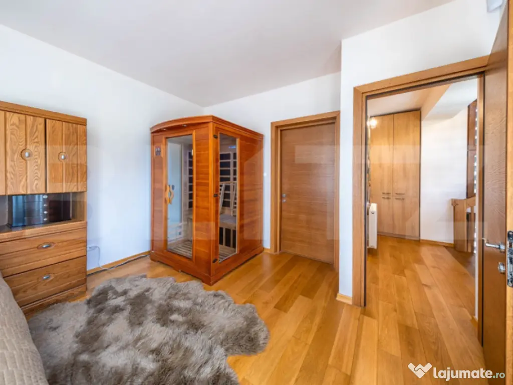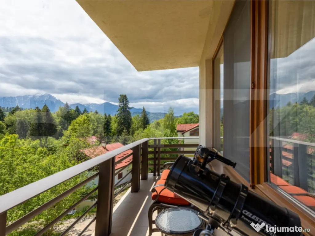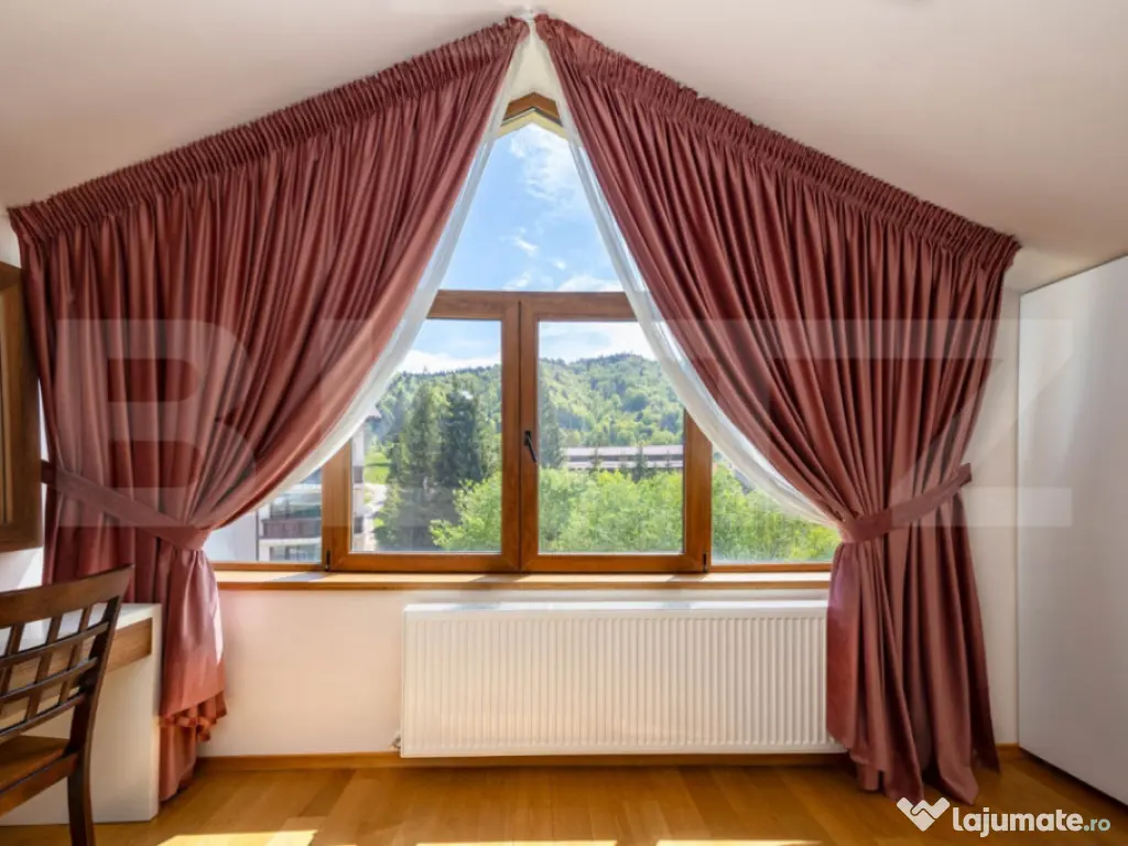 Descoperiţi o vilă exclusivistă cu 6 camere, cu panoramă spectaculoasă spre munţii din Predeal — o oportunitate rară pentru cei care caută confort, intimitate și eleganță într-un cadru natural de vis. Această proprietate este ideală atât ca locuință permanentă de lux, cât și ca refugiu de weekend sau casă de vacanță pentru întreaga familie. Această locuință spațioasă și luminoasă, cu o compartimentare practică, este proiectată pentru a oferi confort pe tot parcursul anului. Casa a fost construită cu materiale de calitate superioară și atenție la detalii. Compartimentare și suprafețe -Suprafață utilă: 225 mp -Teren: 461 mp -Dormitoare: 4 -Living-uri: 2 spațioase -Băi: 3 complete + 1 toaletă de serviciu -Balcoane: 3 -Alte spații: cameră tehnică cu spații de depozitare Compartimentare pe semi-nivele: -Demisol: cameră tehnică, cabinete depozitare -Parter: bucătărie complet utilată, baie de serviciu -Semi-Nivel 1: living open, balcon -Semi-Nivel 2: dormitor, baie, balcon -Semi-Nivel 3: living open, balcon -Semi-Nivel 4: dormitor, baie -Mansardă: 2 dormitoare, baie Dotări și facilități: -Bucătărie complet utilată, cu echipamente moderne -Scară interioară din lemn masiv de stejar -Primul living cu șemineu pentru momente relaxante -Al doilea living ideal pentru billiard/tenis de masă, cu acces la balcon pentru priveliști montane -Geamuri termopan cu tâmplărie PVC -Pardoseli din lemn masiv în toate încăperile -Sistem de monitorizare CO2 și sistem de alarmă -Centrale termice pe gaz la demisol -Branșament electric trifazic și generator electric instalat - Terasa cu zonă de barbeque și căsuță de grădină Stare și mobilare: -Imobilul se vinde parțial mobilat și utilat -Posibilitate achiziție prin surse proprii sau finanțare bancară Dotări principale: Sistem de alarmă, sistem de monitorizare CO2, șemineu, 3 balcoane, generator electric, curent trifazic. Cod ofertă / ID BLITZ: P159086 Id intern: P159086 Număr niveluri imobil: 4 Număr Băi: 4 Nr. locuri parcare: 2 Curent Apă Canalizare Gaz
