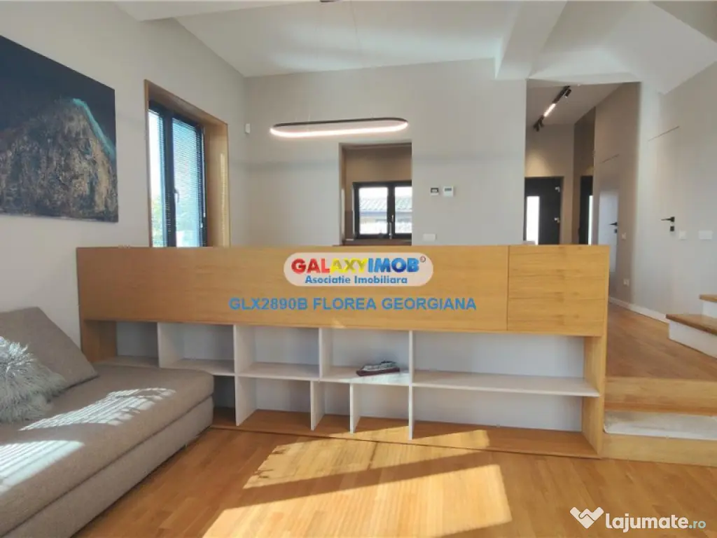 Vila premium de inchiriat - Otopeni - complex privat - constructie 2024 - 180 mp utili - curte amenajata Disponibila spre inchiriere este o vila moderna, finalizata in 2024, situata in Otopeni, zona strada Munteniei, intr-o comunitate privata formata din doar 6 vile, cu acces controlat si un cadru rezidential exclusivist. Proprietatea a fost amenajata cu ajutorul unui designer, cu multa atentie la detalii, pentru a crea o casa eleganta, primitoare si foarte confortabila (cosy), ideala pentru o familie care isi doreste un standard ridicat de locuire. Suprafata utila a vilei este de aproximativ 180 mp, la care se adauga o terasa de 20 mp si o curte privata amenajata peisagistic, oferind un spatiu exterior perfect pentru relaxare. Compartimentare: - living generos, cu canapea mare si televizor de dimensiune foarte mare - zona de dining cu masa ampla si locuri suficiente, potrivita atat pentru o familie numeroasa, cat si pentru intalniri sau evenimente cu prietenii sau familia - bucatarie inchisa cu perete de sticla, complet mobilata si utilata, dotata cu toate electrocasnicele necesare unei locuinte de acest tip - 3 dormitoare la etaj - dormitor matrimonial cu dressing si baie proprie - mansarda open space, amenajata cu zona de dormit si un spatiu amplu de recreere - 4 bai in total, pe fiecare nivel Spatii auxiliare si depozitare: - numeroase spatii de depozitare integrate in intreaga casa - camera tehnica dotata cu masina de spalat rufe, uscator si frigider suplimentar Exterior si parcare: - curte privata amenajata peisagistic - terasa de 20 mp - 2 locuri de parcare dedicate - 1 loc de parcare pentru vizitatori Dotari si finisaje premium: - panouri fotovoltaice - sistem HAC (incalzire / racire) - centrala termica proprie - boiler de capacitate mare - mobilier premium (Miso, Rovere, BoConcept) - usi filomuro - parchet cu rasina - locuinta complet mobilata si utilata Proprietatea este situata intr-o zona exclusiv de vile, foarte linistita si aerisita, cu acces rapid catre zona de nord a Bucurestiului, aeroport, centre de business si zone comerciale. Vila este ideala pentru rezidenta unei familii sau pentru expati care cauta confort, intimitate si un standard ridicat de locuire. Pret de inchiriere: 1.750 EUR / luna, garantie: valoarea unei chirii, comision agentie: 50% Informatii eficienta energetica: Clasa energetica: Consumul de energie primara: Indicele de emisii echivalent CO2: Consum de energie din surse regenerabile: Număr niveluri imobil: 3 Număr Băi: 4 Posibilitate parcare: Da Nr. locuri parcare: 3 Curent Apă Canalizare