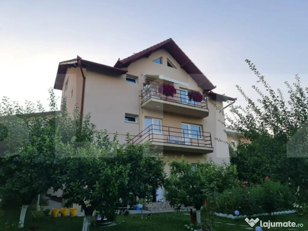 Vă ofer spre vânzare o casă deosebită, situată în Făget, intr-o zonă rezidențială liniștită, cu trafic auto redus și cu mult spațiu verde. Casa dispune de un design modern și aparte, datorită atenției cu care a fost gândită, oferind calitate vieții și un sentiment de relaxare și confort. Aceasta este dispusă pe un regim de înălțime D+P+E+M cu o suprafață desfășurată de 450 mp + suprafata de la Mansarda ( 80 mp ), compartimentată astfel: - La demisol găsim camera tehnică, un loc de depozitare, 2 garaje, o bucatarie, 2 camere, hol, baie si accesul spre gradina. - Parterul casei ne întâmpină printr-un hol ce comunică cu bucătăria și casa scării. Livingul este unul spațios, ce îți oferă un prilej unic de relaxare, având geamuri generoase care îți permit să te conectezi foarte ușor cu natura din jurul casei și care îți oferă posibilitatea de a ieși pe terasa exterioara, , loc inedit de a petrece momente unice alături de familie și prieteni. Bucătăria și livingul mobilate si utilate pregatite pentru a le incarca cu energia casei. Tot la acest nivel mai găsim un loc de depozitare, o cămară, si baia - Nivelul superior ne pune la dispoziție un dormitor elegant și luminat, o camera de oaspeti , un living spatios o bucatarie cu iesire pe balcon si o terasa, ambele foarte generoase, care vă oferă posibilitatea de a admira toată curtea casei, dar care vă oferă și o liniște armonioasă, acompaniată de natura ce o înconjoară. Locuința a fost concepută, prin compartimentarea sa bine gândită și funcțională, cu încăperi vitrate și luminate, să ofere un cadru prielnic de tihnă și detașare din mediul cotidian. In aceasta casa se tine mult cont de intimetatea fiecareia, este compartimentata pe etaje astef fiecare etaj avand destinat un apartament. Este foarte potrivita pentru o familie mai numeroasa , ori 3 familii, pentru ca fiecare nivel dispune de toate cele necesare unui confort ridicat. Construcția a fost realizată în anul 2014, folosindu-se materiale de bună calitate. Beneficiază de sistem de incalzire pe Centrala Termica care incalzeste toata casa. Proprietatea dispune de un teren în suprafață măsurată de 600 mp, frumos amenajat și delimitat pe zone. Astfel, terenul din fața casei este pavat, existând posibilitate de parcare auto, dar care ne întâmpină și printr-un spațiu verde îngrijit cu flori și pomi decorativi, iar terenul din spatele casei ne pune la dispoziție o zonă largă de relaxare, unde găsim pomi fructiferi, zona de barbeque și o căbănuță pentru scule și obiectele de grădinărit. Pentru mai multe informații și o posibilă vizionare, aștept să mă contactați! Cod ofertă / ID BLITZ: P90481 Id intern: P90481 Număr niveluri imobil: 2 Număr Băi: 3 Nr. locuri parcare: 3