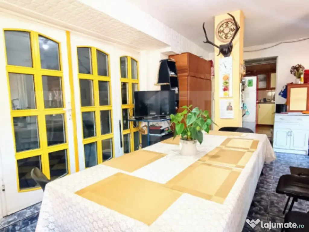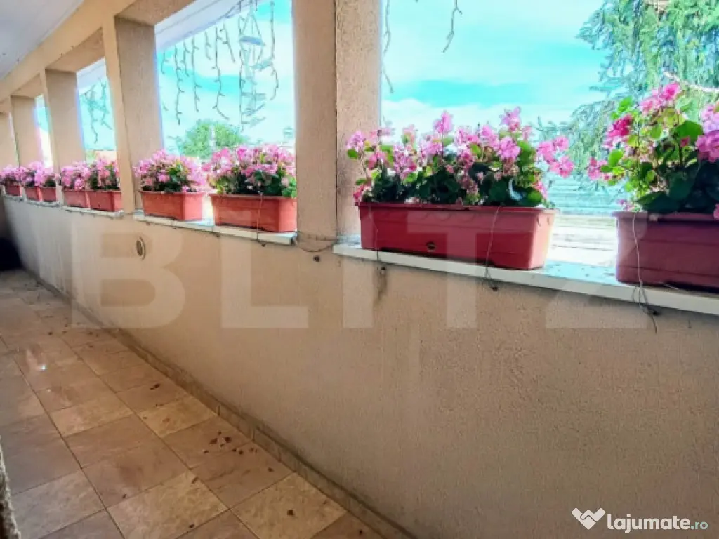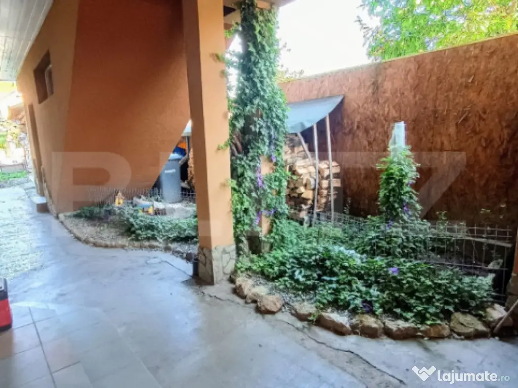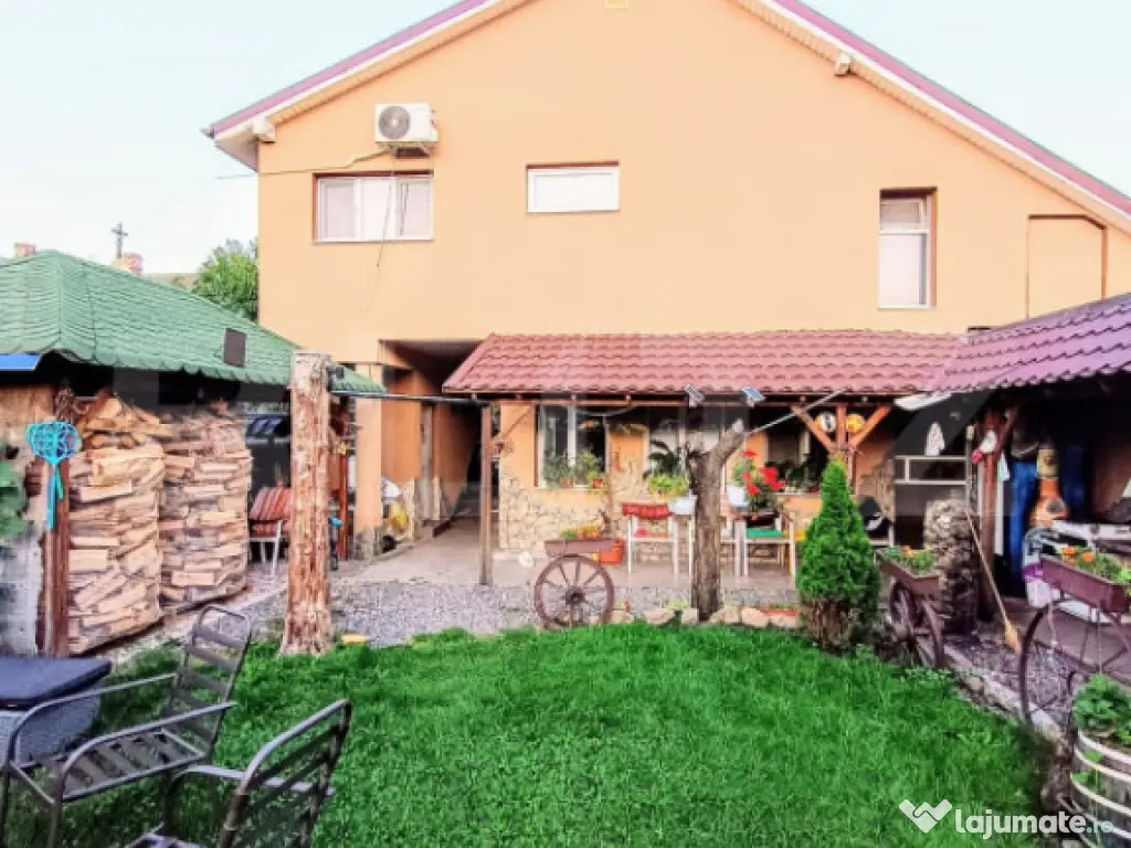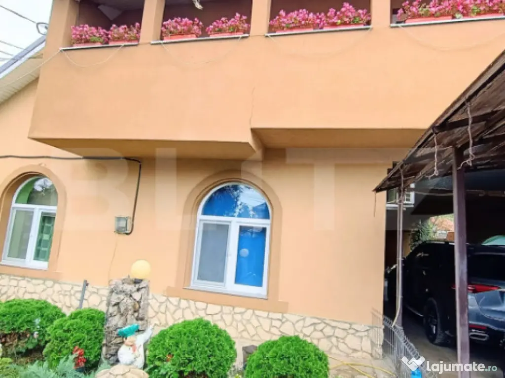 Blitz vă propune spre vânzare o proprietate deosebită, compusă din două corpuri separate cu suprafata totala de 320 mp locuibili, amplasate pe un teren de 579 mp, situata într-o zonă cu potențial remarcabil pentru investiții. Corpul 1 are o suprafata de 187 mp, regim de inaltime, parter + mansardă. Parter: hol intrare, living + dining open space, bucătărie, două dormitoare, baie, terasă închisă cu zonă de luat masa. Mansardă: birou cameră de zi, dormitor, baie, dressing și balcon care face legătura între cele două corpuri. Intrarea intre cele doua corpuri este separata, oferind posibilitatea de a functiona ca 2 apartamente separate. Corpul 2 a fost construit in 2015, are o suprafata de 133 mp si este compus din casa scarii la parter, iar la mansarda din living cu bucatarie open space, 2 dormitoare cu dressing, iesire pe balcon si baie. Ambele proprietati sunt dotate cu aer conditionat cu invertor. Curtea este betonata, acces auto si loc de parcare acoperit pentru 2 masini. Gradina este amenajata cu gazon si arbusti pereni. Foișor acoperit în spatele casei. Casa este construita din caramida cu fundatie din beton si acoperis din tigla metalica lindab. Este izolata la exterior cu polistiren de 10 cm. Pod spatios, izolat. Proprietatea este dotata cu panouri fotovoltaice cu invertor DEYE de 8 kw cu 2 baterii de stocare 21 kw, montate în 2025, cu garanție extinsă. Puffer 500 L conectat la termosemineul pe lemne, ofera o economie substanțială la gaz și electricitate. Centrala pe gaz cu condensare, boiler electric de 200 L pentru perioada de vara care consuma din panouri. Proprietatea este dotata cu sistem de securitate. Puncte forte: Zonă linistita, cu acces facil la transport și utilități; Posibilități multiple de configurare și utilizare; Curte generoasă, spațiu pentru parcare și intimitate. Dacă sunteți în căutarea unei proprietăți multifuncționale, cu potențial mare de profit, această ofertă este alegerea perfectă! Contactați-ne pentru mai multe detalii sau pentru a programa o vizionare Cod ofertă / ID BLITZ: P155067 Id intern: P155067 Număr niveluri imobil: 1 Număr Băi: 3 Curent Apă Canalizare Gaz Climă