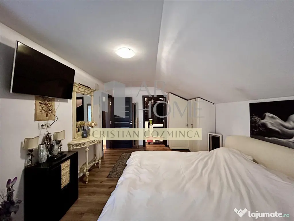 Vila individuala situata in Breaza de Jos, intr-o zona linistita si verde, potrivita atat ca locuinta permanenta, cat si ca resedinta de vacanta. Proprietatea are o suprafata construita totala de 184 mp, din care 170 mp utili, amplasata pe un teren de 340 mp. Amprenta la sol este de 87 mp, iar mansarda are o suprafata similara. Construita in anul 2016 din beton armat si caramida Porotherm, casa a fost recent renovata si izolata termic la exterior cu polistiren de 10 cm. Acoperisul este din tabla Lindab, iar tamplaria PVC este cu geam termopan. Compartimentare: Parter: sufragerie luminoasa, dormitor, bucatarie complet mobilata si utilata, baie si o incapere de relaxare ce are in extensie o sauna cu anexa proprie (25 mp), dotata cu circuit electric separat; Mansarda: 3 dormitoare, baie si balcon generos pe toata lungimea casei. Icirc;n plus, imobilul dispune de beci de 12 mp, ideal pentru depozitare. Detalii tehnice: fundatie din beton armat; pereti interiori din rigips cu izolatie din vata minerala; finisaje premium: parchet, gresie, marmura si granit; curte individuala amenajata, cu alee placata cu granit; fantana proprie cu hidrofor si fosa septica; racord la canalizare; curent 220V cu stabilizator de tensiune; incalzire cu centrala termica pe gaz si calorifere din otel. Se vinde complet mobilata si utilata: aragaz, hota, frigider, cuptor, cuptor cu microunde, masina de spalat rufe etc. Aceasta proprietate ofera echilibrul perfect intre confortul modern si linistea unei zone de munte, fiind ideala pentru o familie care apreciaza spatiul, natura si intimitatea. Pret: 156.000 euro Număr Băi: 2 Curent Apă Gaz