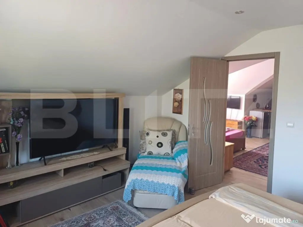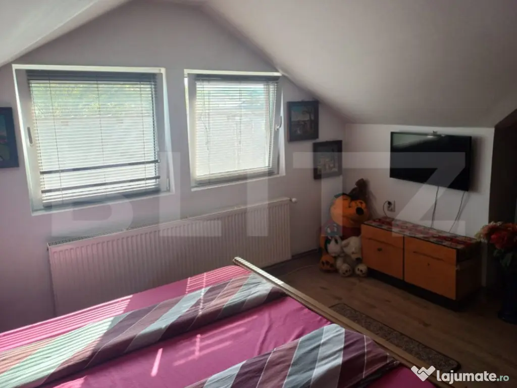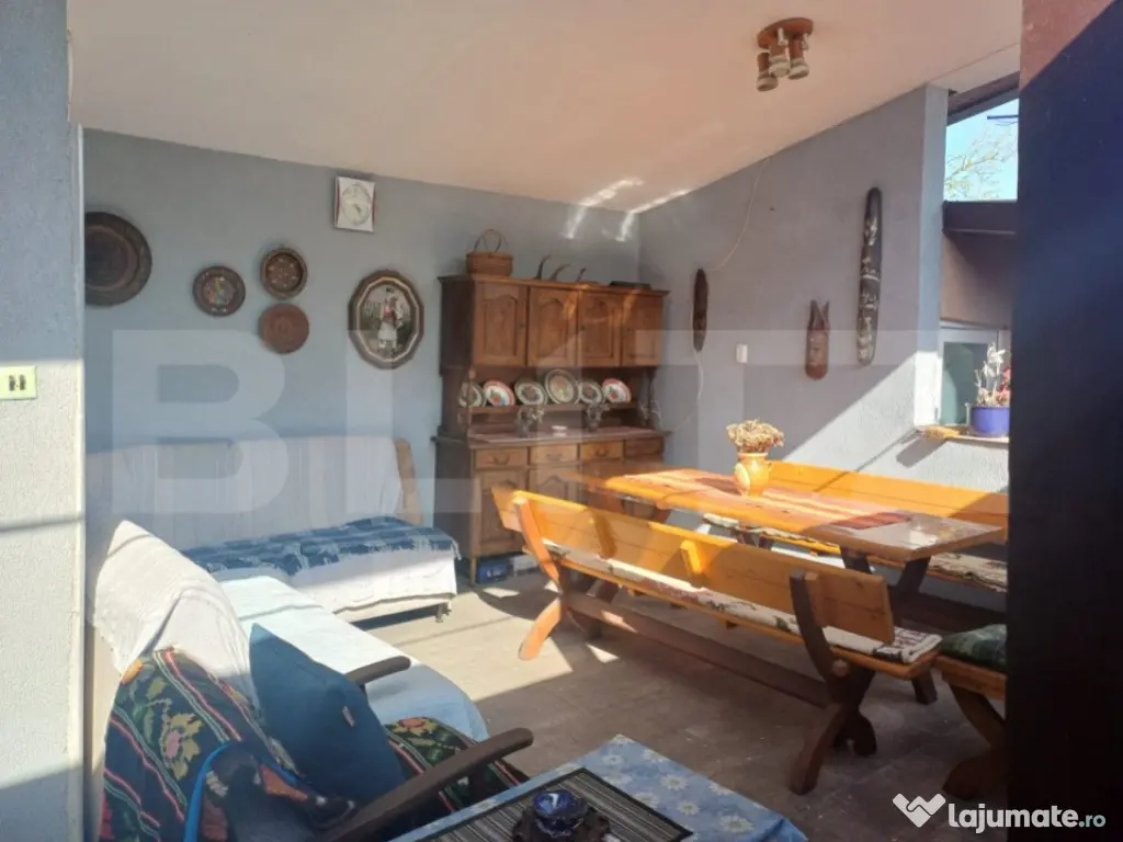 Descoperiti oportunitatea unica de a deveni proprietarul unei case de vis in Turda, o locatie care combina perfect intimitatea unui camin linistit cu accesul facil la facilitatile urbane esentiale. Aceasta proprietate impresionanta, recent renovata, este ideala atat pentru a fi transformata intr-o pensiune primitoare, cat si pentru a gazdui doua familii, datorita designului sau inteligent si spatiului generos. Caracteristici Remarcabile: Spatiu Generos: Cu 6 camere spatioase si 5 bai bine echipate, aceasta casa ofera confortul si intimitatea de care aveti nevoie. Facilitati Exterioare: Un garaj spatios cu bucatarie de vara si 2 cu baie adauga valoare si functionalitate curtii dumneavoastra, ideal pentru petrecerile in aer liber si momentele de relaxare. Renovare de Top: Casa a fost recent renovata, beneficiind de incalzire centrala pe gaz, finisaje moderne si un design interior care imbina eleganta cu functionalitatea. Beneficii Aditionale: Gradina Vasta: Cu o gradina de 270 metri patrati, aveti spatiul perfect pentru gradinarit, jocuri in aer liber sau pur si simplu pentru a va bucura de frumusetea naturii. Spatiu de Depozitare: Cele 2 beciuri ofera ample posibilitati de depozitare, fie ca este vorba de vinuri, conserve sau echipamente. Localizare Ideala: Aflata in proximitatea parcului din Turda Noua, langa spital si Scoala Generala numarul 2, casa beneficiaza de o pozitionare strategica, oferind acces usor la zonele de interes ale orasului. Flexibilitate si Confort: Potrivita pentru Diverse Utilizari: Fie ca doriti sa o transformati intr-o pensiune de succes sau pentru familia dvs., casa ofera flexibilitatea necesara pentru a se adapta la planurile dumneavoastra. Parcare Generoasa: Curtea vasta poate gazdui pana la 5 masini, eliminand orice grija legata de spatiul de parcare pentru dumneavoastra si oaspetii dumneavoastra. Detalii Tehnice: Suprafata Construita: 360 metri patrati de spatiu bine planificat, proiectat pentru a maximiza confortul si functionalitatea. Gradina: 270 metri patrati, oferind un sanctuar verde privat, perfect pentru relaxare si activitati in aer liber. Pentru a descoperi cum aceasta proprietate remarcabila poate deveni noua dumneavoastra casa sau o investitie profitabila, va invitam sa ne contactati. Nu pierdeti ocazia de a vizita si, eventual, de a achizitiona aceasta casa splendida in inima orasului Turda, un spatiu unde confortul, eleganta si functionalitatea se intalnesc armonios. Cod ofertă / ID BLITZ: P102730 Id intern: P102730 Număr Băi: 5 Curent Apă Canalizare Gaz