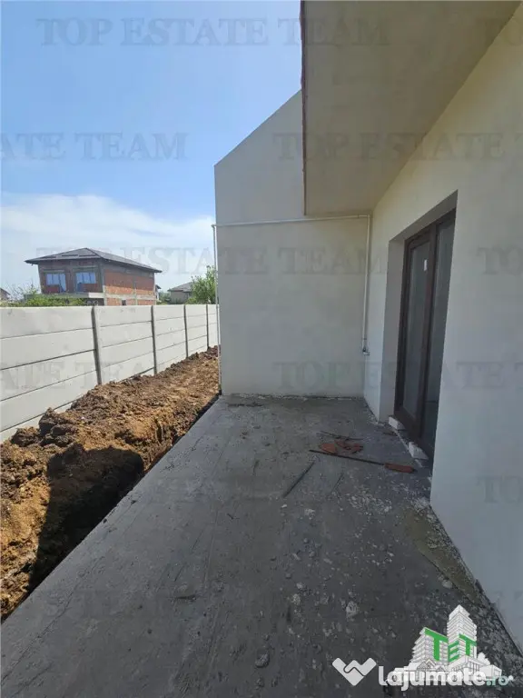 Compartimentare standard: Hol, living cu iesire pe terasa 14.6mp, bucatarie inchisa, baie cu dus, 3 dormitoare, 1 baie si 1 balcon la etaj, pod inalt pentru depozitare.