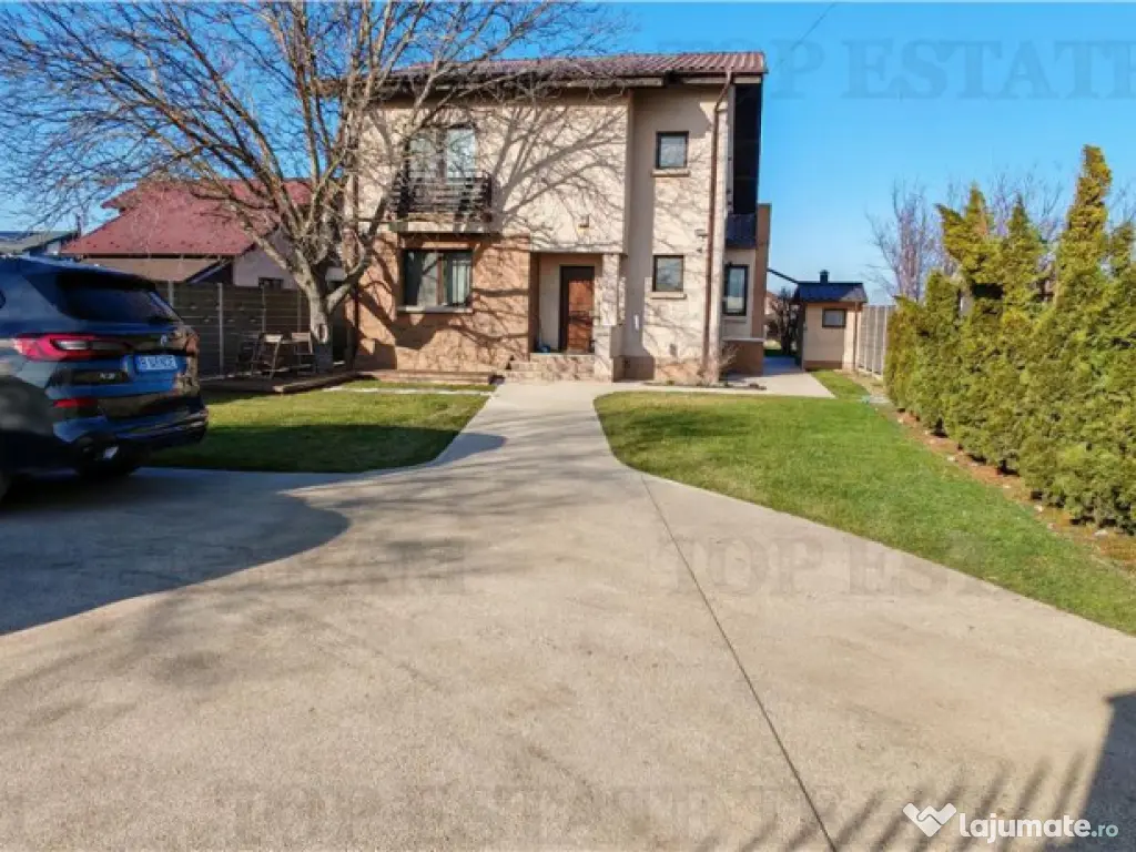 Excelenta prin experienta ! Noi nu vindem francize, noi vindem proprietati... si o facem pe 5 continente ! Va propunem la vanzare o proprietate deosebita situata intr-o zona linistita, ferita de trafic, praf si zgomotul urban, dar cu acces foarte rapid atat catre Linia de Centura ( 10 minute ) mai exact in Domnesti avand acces imediat la toate facilitatile unui trai urban modern (STB, supermarket, gradinita, sala fitnessamp;SPA, centru medical, etc). Vila este foarte solida, construita in regie proprie, cu materiale de cea mai buna calitate cu ajutorul unei firme de renume si portofoliu vast in domeniu Constructie este realizata din cadre beton si caramida portotherm de 30 cm. Suprafata utila 200mp, suprafata totala 240mp,mansarda inalta, teren 1000mp. Curtea este superb amenajata cu alei pavate, zona de gradina, pomi maturi ornamentali, foisor pentru relaxare, zona pentru gratar, rotisor, casuta pentru scule/unelte, loc de joaca pentru copii, terasa vitrata si acoperis retractabil, paechet din lemn masiv ( TEK ) semineu functional pe lemne, purificatoare de aer in toate camerela plus aere conditionate tip inverter, statie de purificare a apei, sistem casa inteligenta,( totul controlat din telrfon ) curent trifazi, statie pentru incarcare masini electrice si multe alte facilitati pe care va invitam sa le descoperiti la o vizionare programata Utilitati: apa, gaze, curent trifazic 380V, internet, centrala proprie pe gaz, sistem de irigare pentru gradina Gard solid cu fundatie de beton si fier Sistem de alarma, sistem video cu inregistrare Vila se vinde complet mobilata si utilata pentru pretul de 299000 EURO, nu se adauga TVA.Actele sunt pregatite pentru notariat cu predarea cheilor dupa semnare . Posibilitate 50% avans si rate pentru 2 ani Oferim consultanta gratuita si facilitarea obtinerii rapide a creditului ipotecar, cu dobanda foarte buna si rate fixe pentru 5 ani, fara costuri ascunse ! Asiguram consultanta juridica si consultanta financiara permanenta ! Oferta exclusiva apartine companiei TOP ESTATE TEAM !. Beneficiaza de serviciile TET: Oferte internationale in peste 15 tari (Cipru, Grecia, Muntenegru, Regatul Unit, Dubai...) Servicii de asigurari Evaluari Autorizate ANEVAR Servicii Property Management De peste 15 ani alaturi de tine! . ID intern: TET0022597. Număr Băi: 3 Posibilitate parcare: Da Nr. locuri parcare: 5-10 Apă Canalizare Gaz