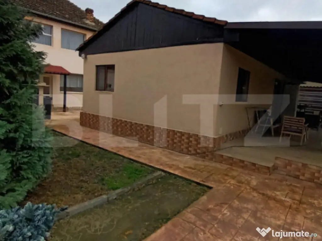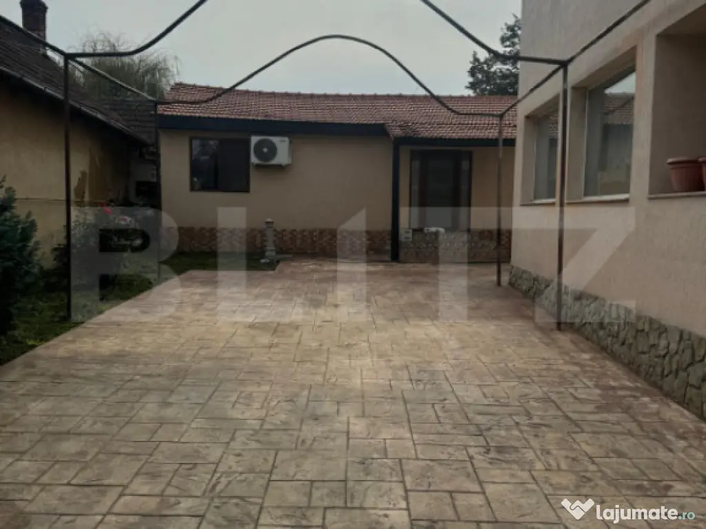 Blitz va propune spre achizitionare o proprietate deosebita situata in Odoreu. Este formata din doua corpuri de casa, cu o suprafata utila de 400 mp+ 2 beciuri(50 mp)+ terase(70 mp), amplasata pe teren de 1200 mp, deschidere stradala de 22 m si loc de parcare pentru 6 autoturisme. CORPUL 1: P+E1 150 mp/nivel, total 300 mp compartimentat astfel; parter-hol/dressing 20 mp, baie cu cada, 3 camere de aproximativ 35 mp fiecare, living, scari acces etaj, terasa acoperita 10 mp, 2 intrari. Etaj-living, 3 camere de 35 mp fiecare, bucatarie, baie, 2 balcoane, 1 terasa. Constructia este din caramida, este izolata termic cu polistiren, tamplarie termopan, centrala termica pe combustibil solid, beci 20 mp. CORPUL 2: parter 105 mp, compus din living spatios, bucatarie, baie, terasa acoperita(60 mp), beci amenajat rustic(30 mp). Constructia este din caramida si este izolata termic. Curtea din fata este pavata cu beton amprentat, gardul este din caramida. In spate este gazon natural, imprejmuit cu tuia. Acces facil, dispune si de a doua intrare prin gradina. Proprietatea este pretabila pentru locuit, activitati comerciale, sedii firma, pensiune, centre de ingrijire. Este amplasata ultracentral in zona, fiind o excelenta oportunitate de investitie pe termen mediu si lung, in contextul extinderii si dezvoltarii urbanistice, comerciale si industriale din zona. Contactati-ne pentru detalii suplimentare si vizionare! Cod ofertă / ID BLITZ: P148188 Id intern: P148188 Număr niveluri imobil: 1 Număr Băi: 3 Nr. locuri parcare: 5-10 Curent Apă Canalizare Gaz