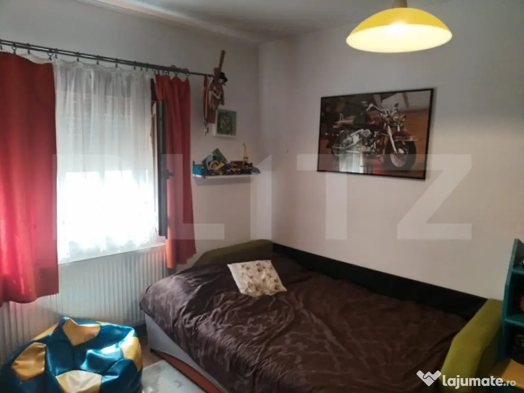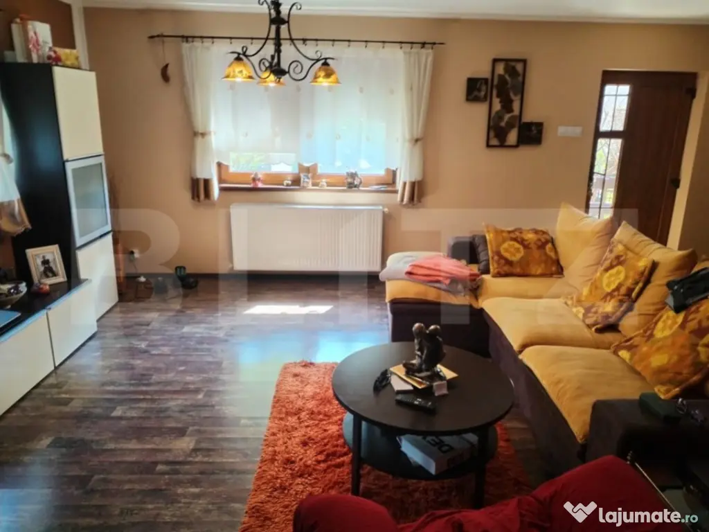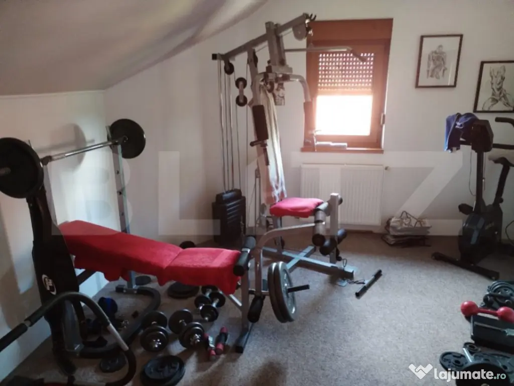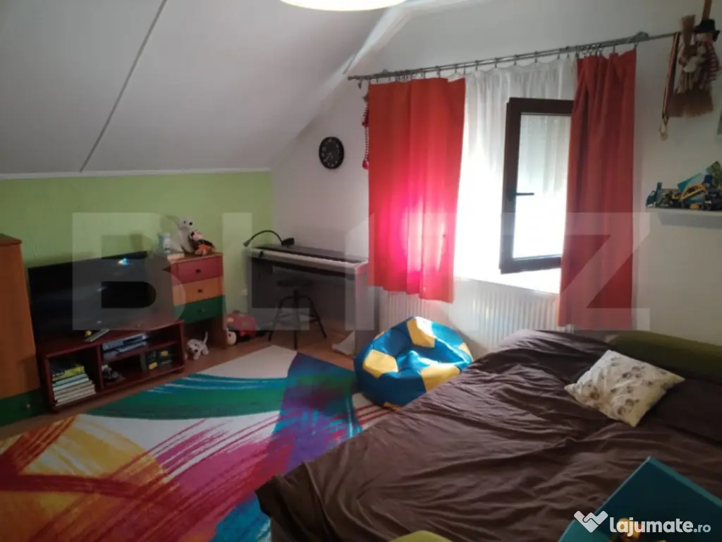 Blitz Satu Mare va propune spre achizitionare o proprietate impresionanta, finalizata in 2015. Este situata intr-o zona linistita si aerisita. Aceasta casa confera un echilibru ideal intre confort modern si un mediu natural deosebit. Suprafata totala a terenului este de 1241 mp. Casa are 210 mp utili si este configurata astfel: la parter se regasesc un dormitor, living generos, dressing, bucatarie, baie, camera tehnica(centrala+boiler) cu intrare atat din interior cat si intrare separata din exterior. La etaj sunt doua dormitoare, hol mare, mini sala de fitness, biblioteca generoasa si o baie. Casa este mobilata, utilata si ultrafinisata cu materiale premium de calitate superioara. Este izolata atat pe exterior(5 cm de polistiren), cat si pe interior(vata minerala+placi de rigips pe caramida). Usa de la intrare si geamurile(prevazute cu jaluzele) sunt din termopan. Toate acestea genereaza costuri de intretinere reduse, ceea ce confera o solutie de locuire economica. Are o terasa de 20 mp, cu o priveliste deosebita inspre curte. Pe teren se regasesc inca doua constructii, garajul cu lemnaria(45 mp) si o magazie pentru scule de gradinarit(9 mp). Curtea interioara este o oaza de verdeata, care se continua cu o frumoasa livada de pomi fructiferi. Proprietatea este prevazuta cu senzori de lumina si este imprejmuita de un gard(270 metri liniari) din beton. Aceasta casa este ideala pentru cei care apreciaza linistea, spatiul generos si peisajele deosebite. Contactati-ne pentru detalii suplimentare si vizionare! Cod ofertă / ID BLITZ: P145535 Id intern: P145535 Număr niveluri imobil: 1 Număr Băi: 2 Curent Apă Canalizare Gaz