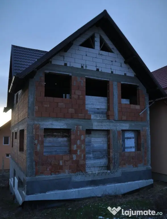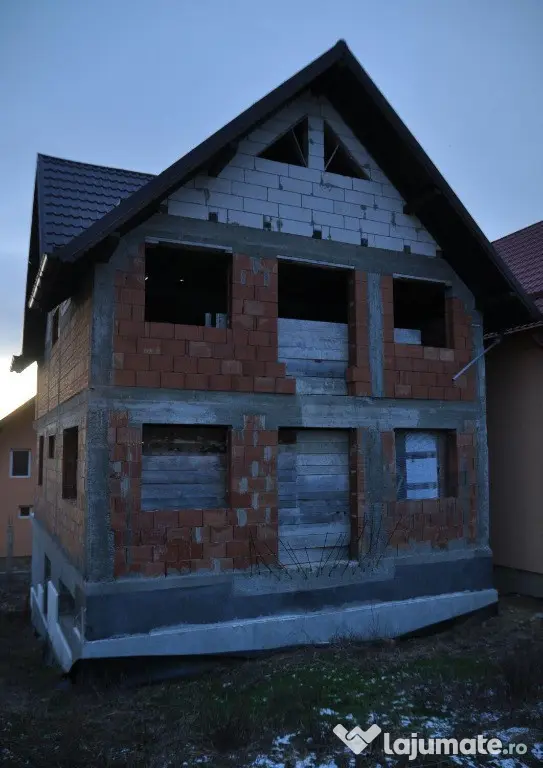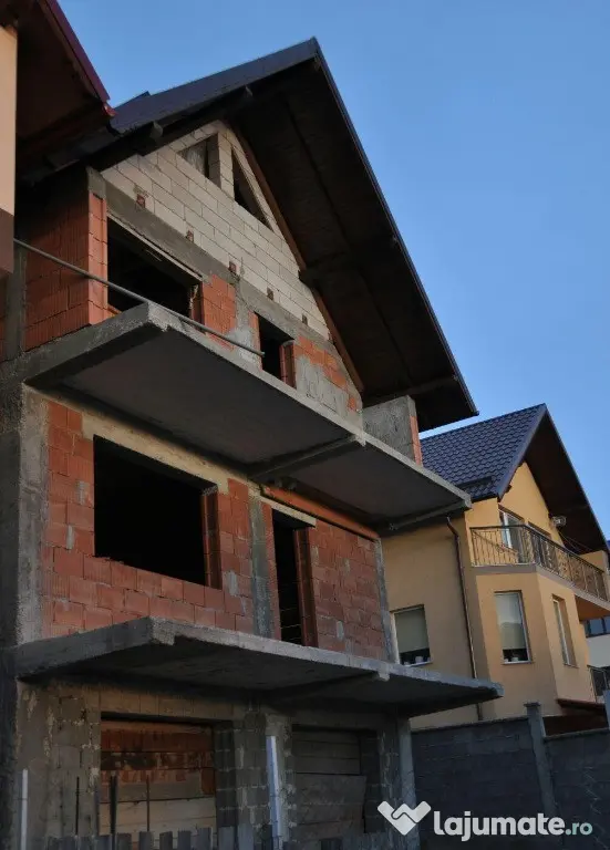 Agentia Imobiliara Family va propune spre vanzare o Vila la rosu, constructie din caramida, edificata in anul 2022, finalizata in proportie de 75%, situata in zona Burdujeni ( dealul Manastirii). Constructia este structurata pe 3 nivele: Demisol + Parter + Mansarda, avand amprenta la sol de 79 mp, suprafata construita desfasurata de 237 mp, Terenul cu o suprafata de 300 mp, cu deschidere la strada de 12 m, este partial imprejmuit cu gard din beton pe latura sud-est. ( este concesionat, avand drept de folosinta).Casa este acoperita cu tabla Lindab. Toate utilitatile ( energie electrica, apa, gaz) sunt in apropierea casei, nefiind inca racordate. Este intabulata, libera de sarcini si se vinde asa cum este in stadiul actual.