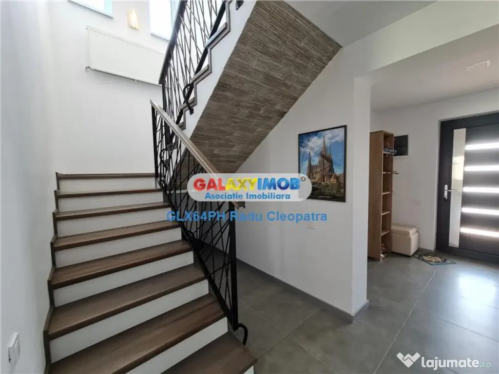 Vanzare vila lux, 5 camere, Paulesti, construita in anul 2021, cu o suprafata de teren de 764 mp,compartimentata astfel: - parter: living bucatarie, birou, baie, garaj, camera tehnica. -etaj: dormitor matrimonial; cu dressing si baie proprie, 2 dormitoare , baie, terasa. Imobilul dispune de cele mai bune finisaje si dotari. Se vinde confrom poze la 325000 euro. Informatii eficienta energetica: Clasa energetica: Consumul de energie primara: Indicele de emisii echivalent CO2: Consum de energie din surse regenerabile: Număr niveluri imobil: 1 Număr Băi: 3 Curent Apă Gaz