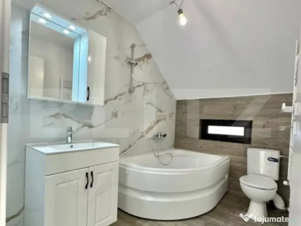Vă propunem spre vânzare o vilă nouă, individuală, amplasată într-o zonă liniștită și aerisită din Valea Voievozilor, la doar 3 km de centrul orașului Târgoviște. Locuința are o suprafață utilă de circa 120 mp și o suprafață totală de 150 mp, incluzând două terase spațioase. Este racordată la toate utilitățile (apă, gaz, electricitate, canalizare) și beneficiază de acces facil pe drum asfaltat, suprafata teren 400mp Compartimentare: Parter: terasă de acces, hol, casa scării, grup sanitar, living luminos, bucătărie cu zonă de dining, terasă exterioară Mansardă: 3 dormitoare decomandate, hol, baie Finisajele sunt realizate cu materiale moderne și de calitate superioară: Izolație exterioară cu polistiren de 10 cm Tâmplărie PVC cu geam termopan, finisaj culoare Wenghe Gresie și faianță import Spania și Italia Parchet Kaindl (Austria) Uși interioare Bella Casa Scară interioară placată cu lemn masiv de pin Dotări: Obiecte sanitare și baterii Grohe și Kroner Mobilier baie inclus Centrală termică în condensare Ariston O locuință ideală pentru cei care caută confort, liniște și acces rapid către oraș. Pentru mai multe detalii sau vizionare, nu ezitați să ne contactați. Cod ofertă / ID BLITZ: P163190 Id intern: P163190 Număr niveluri imobil: 1 Număr Băi: 2 Curent Apă Canalizare Gaz
