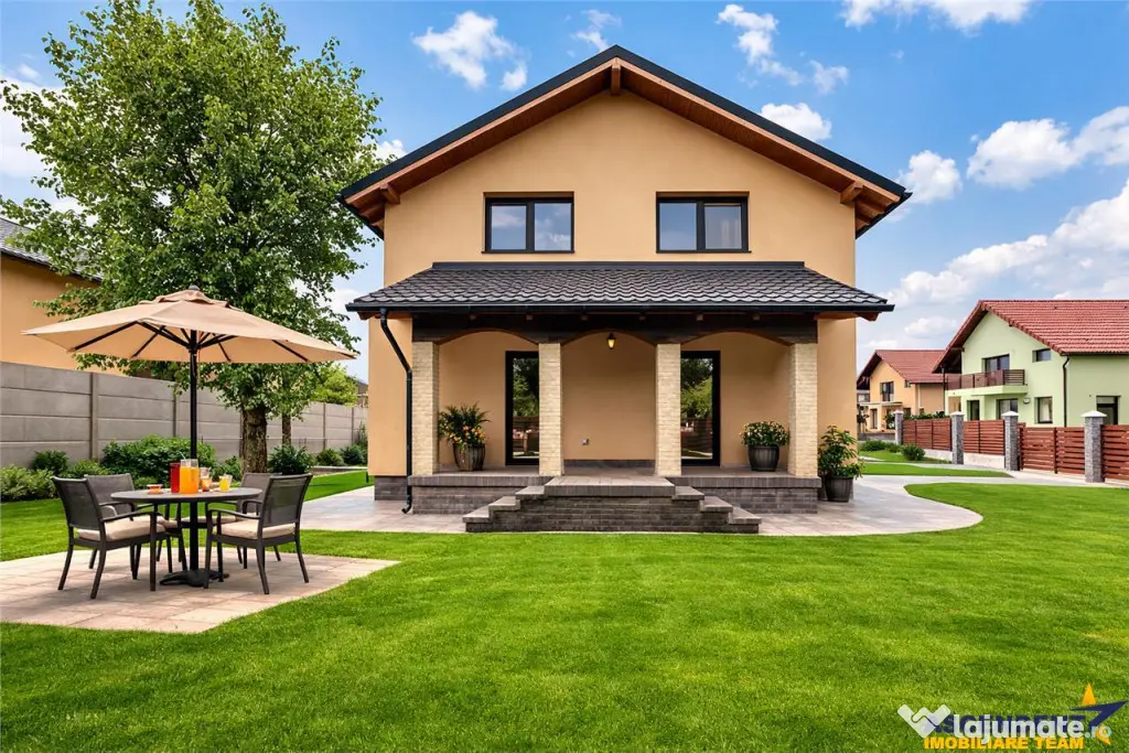 Resedinta este definita de spatii largi si insorite cu posibilitatea alegeri pozitie casei din cadrul unui complex rezidential nou construit unde vor fii amenajate si spati verzi cu loc de joaca pentru copii.