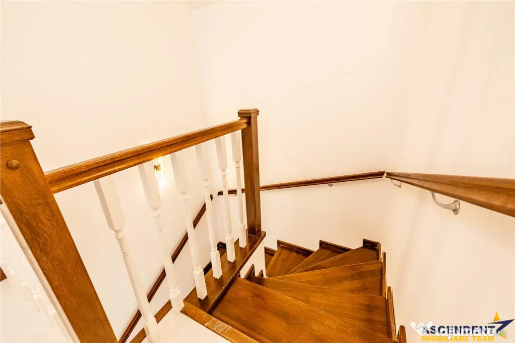La etaj se desfasoara trei dormitoare spatioase, dintre care doua au iesire pe balcon, o baie mare cu cada ,