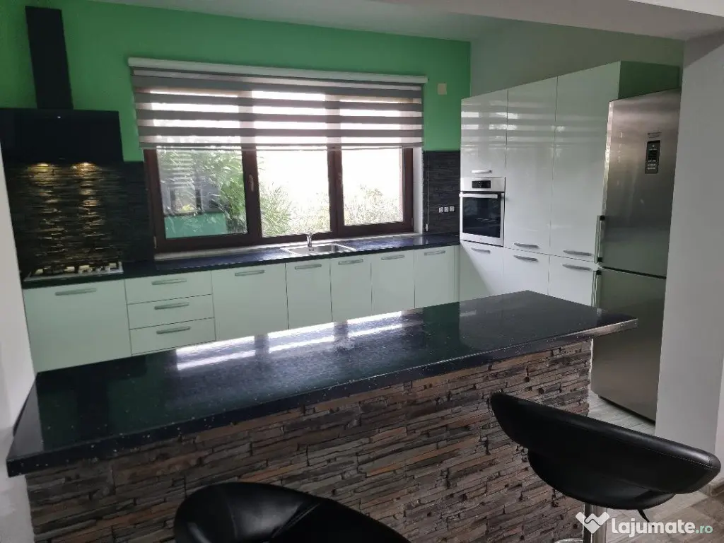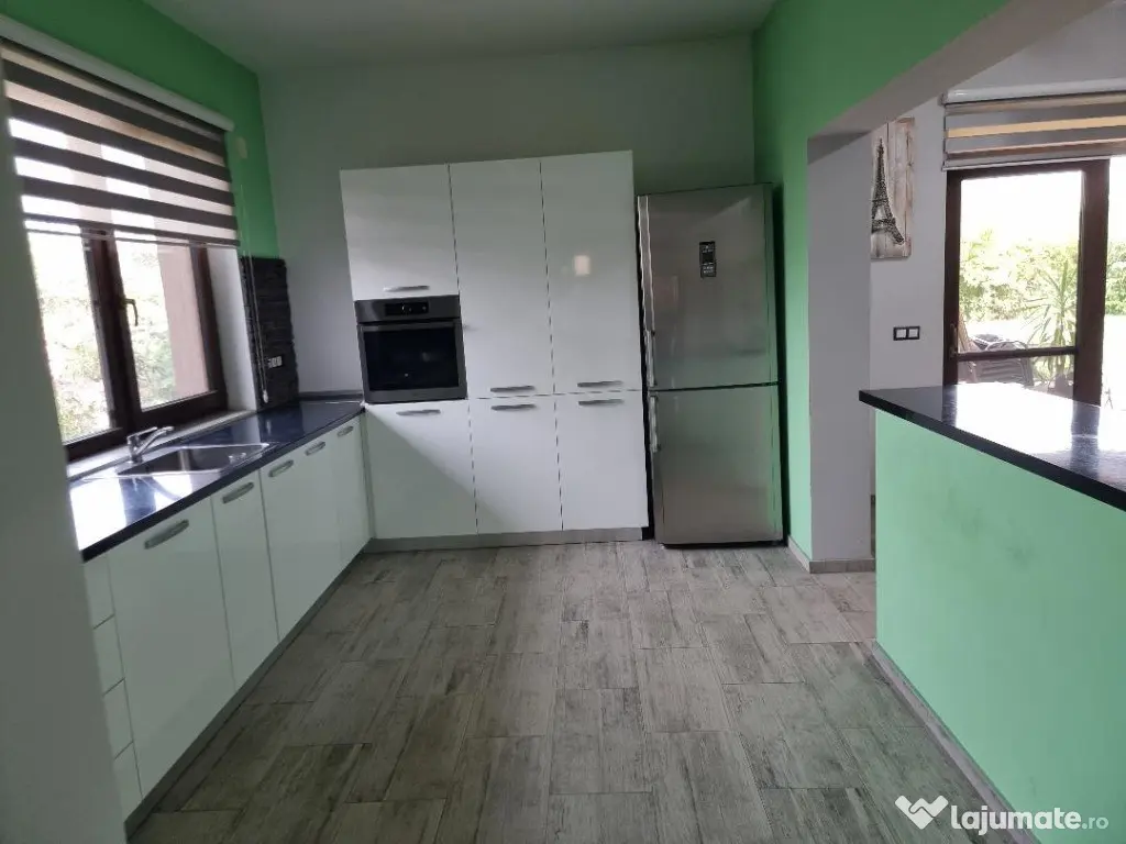 Vand vila pe nivel Parter zona Cantemir-Nufarul , str linistita , constructii noi pe strada . Casa are SC 185 mp , plus terasa, teren 700 mp , imprejmuita complet , curte amenajata .Casa este construita din porotherm de 30 cu izolatie de 10 , acoperita cu tigla din beton Leyer , si se compune din living mare open -space cu bucatarie si loc de luat masa cu geamuri mari vitrate cu 6 camere 3 sticle Madrugada , 3 dormitoare , 2 bai ( una cu dus , una de serviciu ), sala cazan cu intrare separata din curte .Incalzirea este prin pardoseala , cu cazan nou pe gaz Motan , si pompa de caldura rezerva ,precum si panouri solare de 5kw.Curtea este complet amenajata cu arbori ornamentali, cu sistem de irigatie automat , are si put propriu de 18 ml adancime , intrare auto cu poarta automata , aer conditionat , jaluzele automate.Casa este amplasata pe o str privata , linistita , sosea. Casa se vinde mobilata , dotata .Pret 325.000 Euro neg Număr niveluri imobil: 1 Număr Băi: 2 Posibilitate parcare: Da Nr. locuri parcare: 5 Curent Apă Canalizare Gaz Încălzire Climă Sistem irigaţie