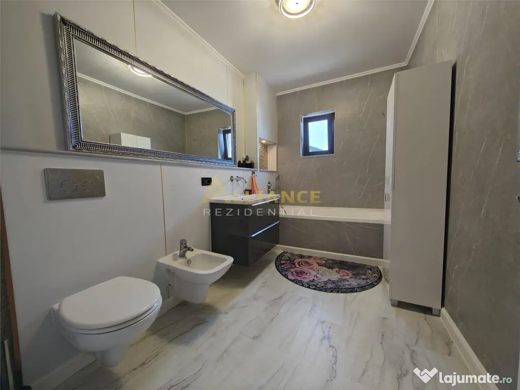 Va propunem spre vanzare o proprietate deosebita, amplasata intr-o zona excelenta, foarte aproape de Bulevardul 1 Mai (centrul comunei), pe strada Marasesti. Datorita pozitiei si compartimentarii generoase, imobilul este ideal atat pentru locuinta, cat si pentru activitati comerciale precum centru pentru batrani, after school, gradinita sau birouri. Proprietatea beneficiaza de deschidere la 2 strazi asfaltate, oferind un avantaj major si flexibilitate in utilizare. Detalii proprietate: Suprafata teren: 450 mp Suprafata utila: 350 mp Front stradal: 20 m Regim de inaltime: Parter Etaj Mansarda Compartimentare: 9 camere spatioase si luminoase 3 bai moderne 2 dressinguri Bucatarie generoasa de 30 mp Terasa la etaj de 30 mp Mansarda complet finisata (80 mp) cu baie proprie Camera tehnica complet echipata Dotari si confort: Tamplarie PVC cu geam tripan pentru izolatie termica si fonica Izolatie exterioara cu polistiren de 10 cm Placa din beton pana la mansarda 2 sisteme de incalzire (gaz si electric) Sistem de dedurizare, osmoza inversa si lampa UV Utilitati: Gaz si curent electric Fosa ecologica (23 mc) cu drenaj Put propriu Sistem separat pentru ape pluviale Exterior si anexe: Curte amenajata cu beton amprentat Foisor de 20 mp Magazie de 40 mp Poarta automata si iluminat exterior Sistem de supraveghere video Proprietatea se vinde complet mobilata si utilata, fiind pregatita pentru mutare imediata sau pentru dezvoltarea unei afaceri. Servicii incluse: Broker gratuit Vizionari disponibile inclusiv in weekend Contact: Gabi ndash; 0739.922.930 Număr Băi: 3 Posibilitate parcare: Da Nr. locuri parcare: 2 Curent Gaz