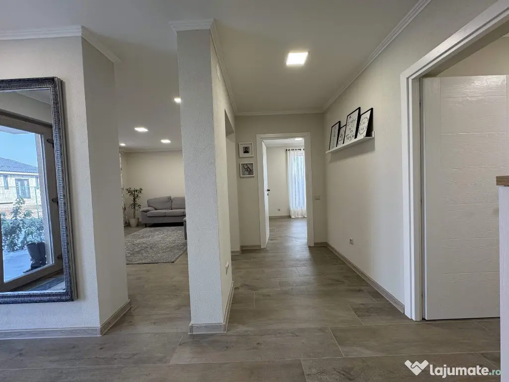 Vila este o constructie moderna, cu regim de inaltime P+M, edificata in anul 2020, pe un teren in suprafata de cca 400 mp., cu o deschidere de 20 m, situata pe str. Agricultorului, intr-un cartier rezidential aflat in plina dezvoltare constructiva.