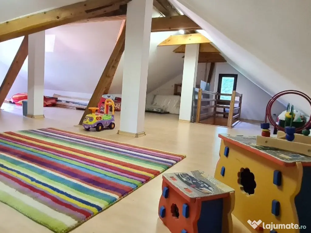- Mansarda a fost transformată într-un spațiu de joacă pentru copii, izolat termic și încălzit.
