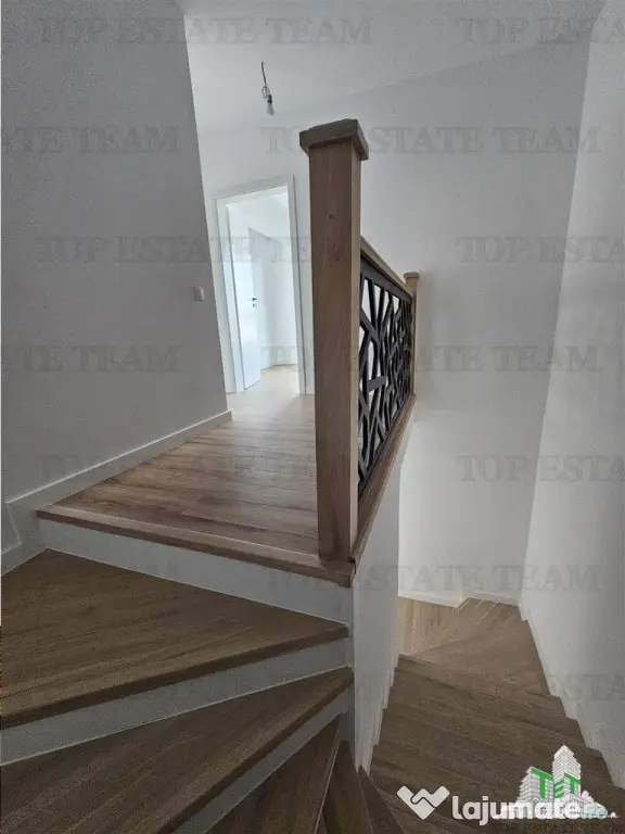 Suprafata utila 120mp, curte libera 150mp, gradina amenajata cu gazon, copaci decorativi, sistem aspersoare. POZE cu titlu de prezentare dintr-un proiect anterior finalizat, termen predare primavara 2026 (constructia in stadiul la rosu)