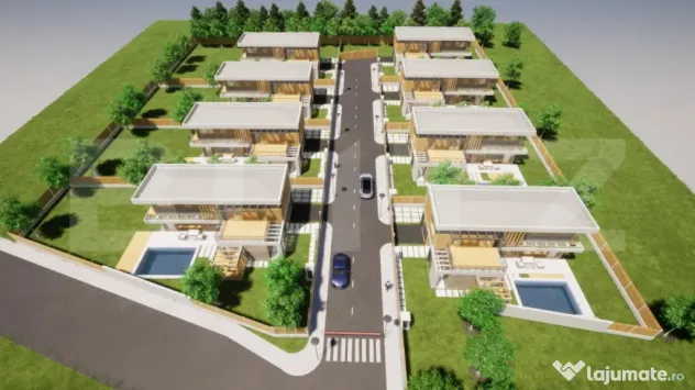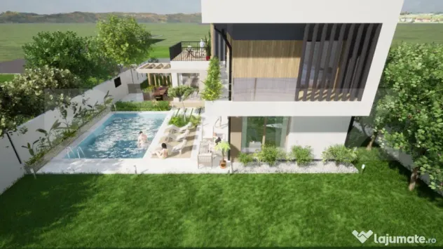 Propunem spre vânzare o vilă unifamilială într-un ansamblu rezidenţial exclusivist de 8 unități, certificare energetică NZEB, cu piscină privată și grădină amenajată, situată în Sânnicoara, la doar câteva minute de Aeroportul Internațional Cluj și 13 km de centru.