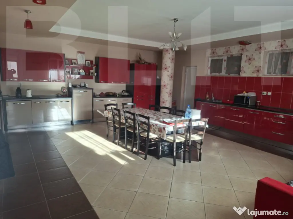 Această vilă impresionantă cu 7 camere oferă un spațiu generos, ideal pentru o familie numeroasă sau pentru cei care își doresc confort și intimitate. Proprietatea este dispusă armonios, cu zone de zi luminoase și zone de noapte bine delimitate.
